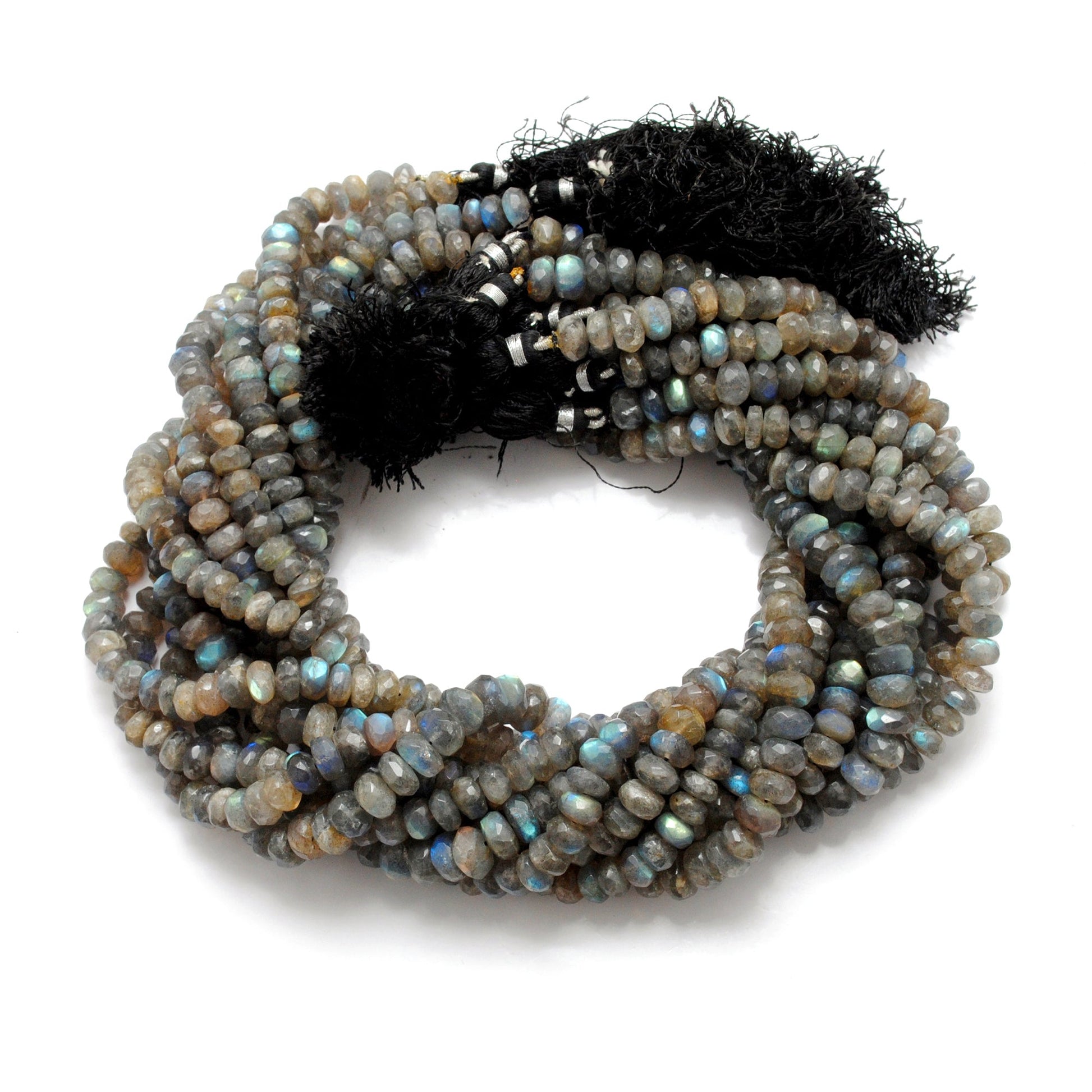 Natural Labradorite Faceted Tyre Beads – 4-6mm or 8mm, 16" Strand | SAR Gems