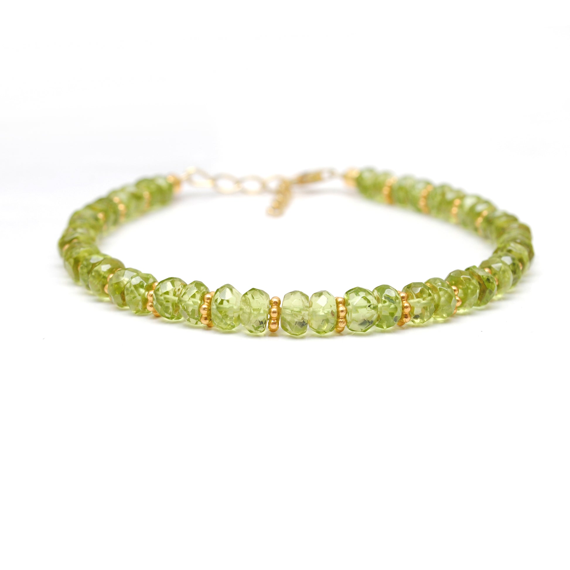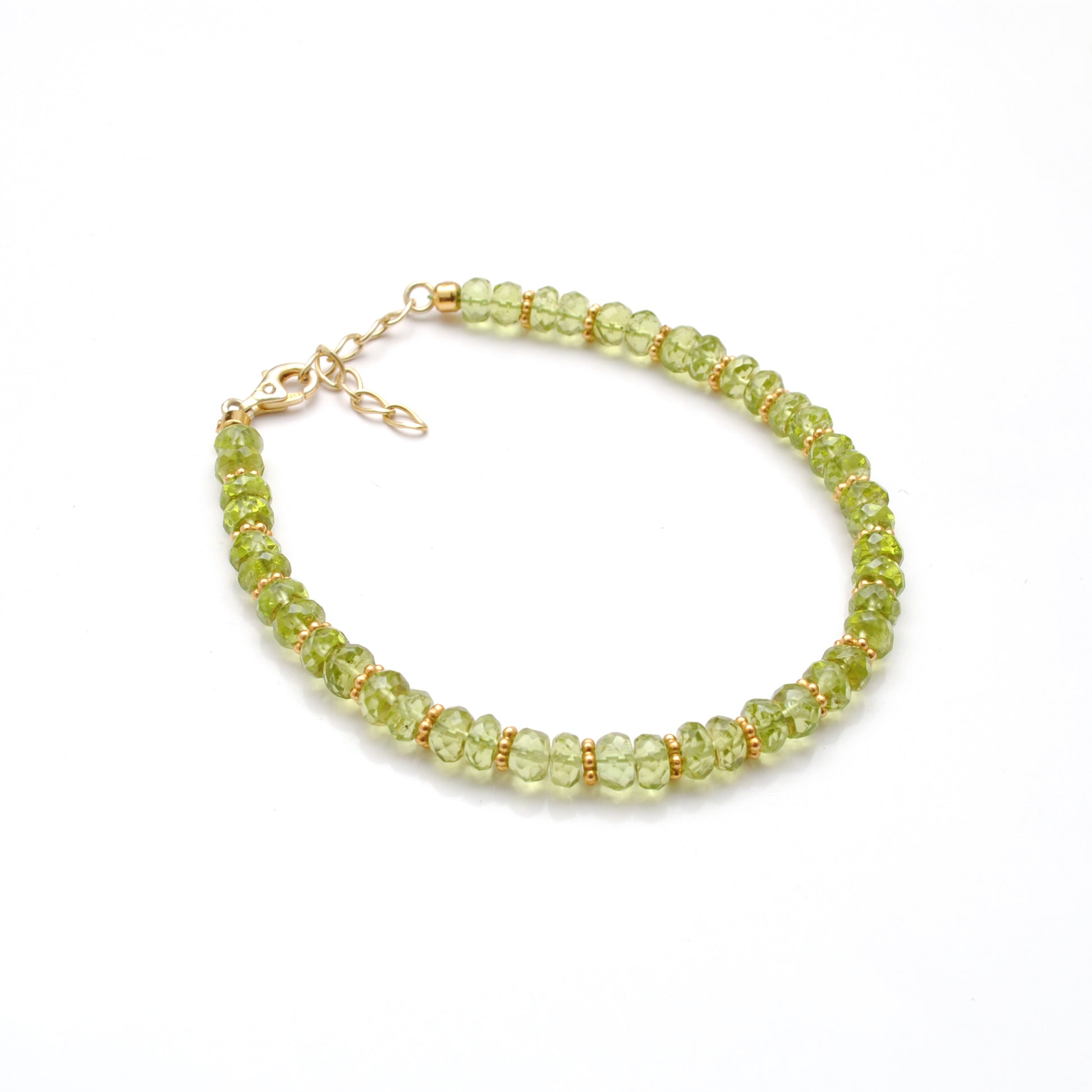 Elevate your jewelry collection with this beautifully handcrafted Natural Peridot Rondelle Beaded Bracelet by Kanika Creations. Designed with elegance and simplicity, this piece features genuine peridot stones faceted to perfection