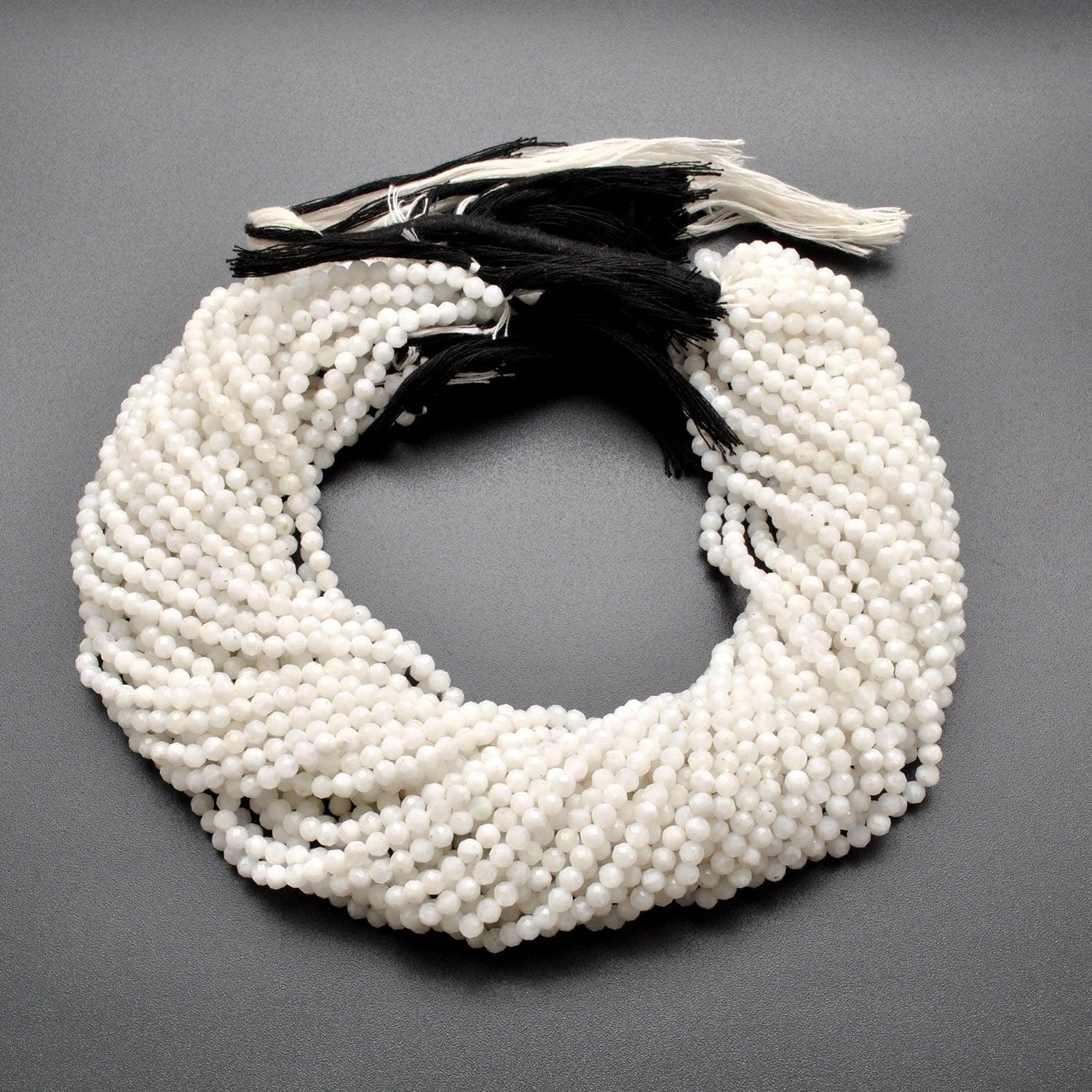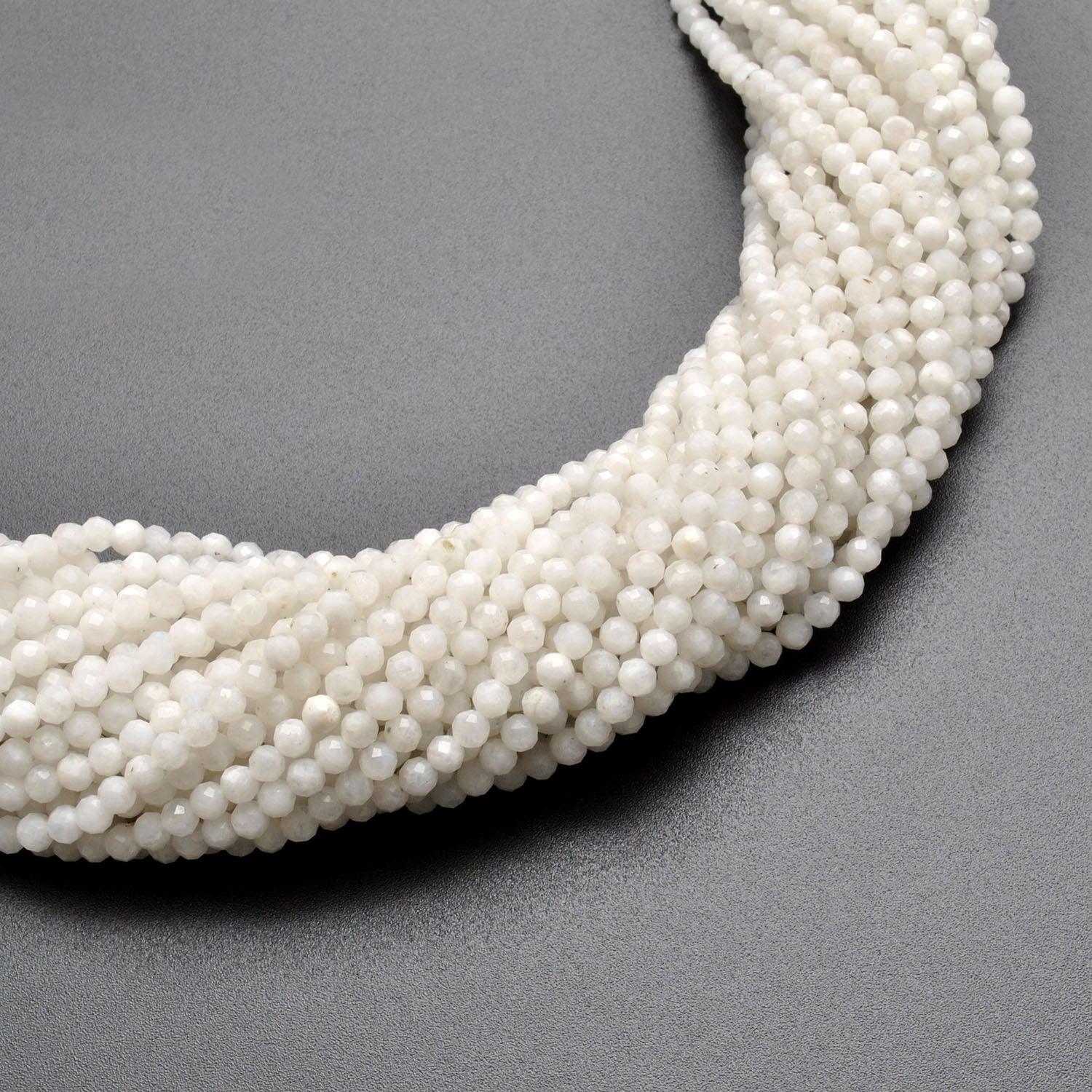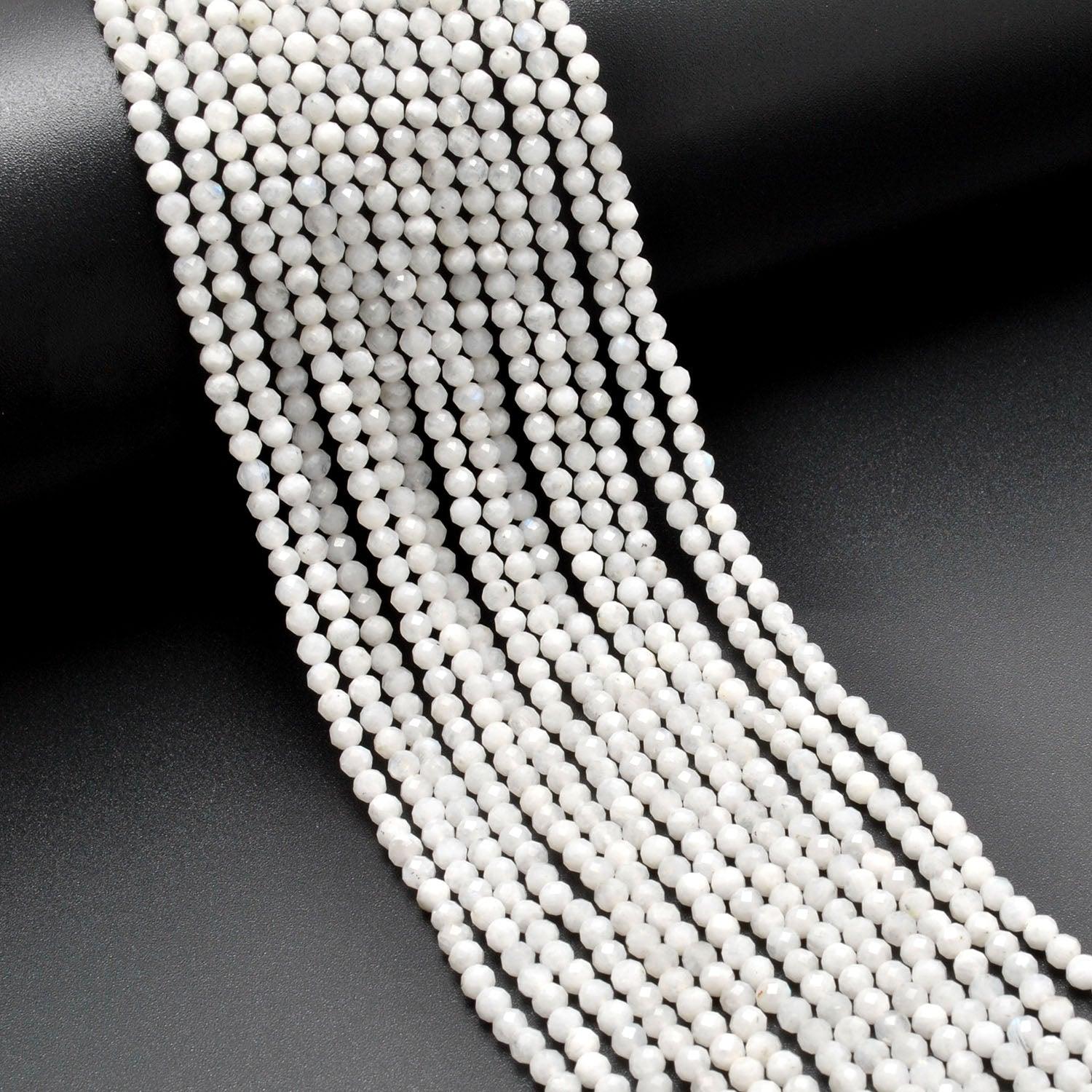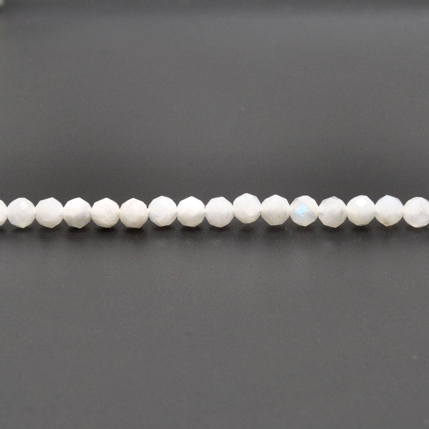 Ideal for ethereal designs, our 13 inch Faceted Round Rainbow Moonstone boasts a luminous glow and mystical appeal. Add a touch of magic to your creations with this natural gemstone.