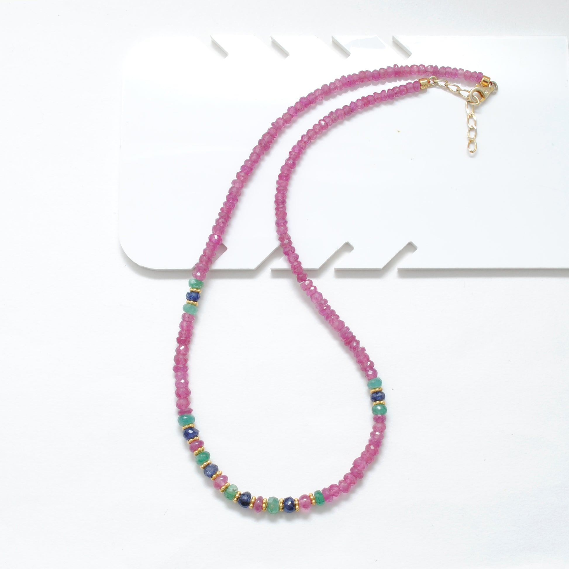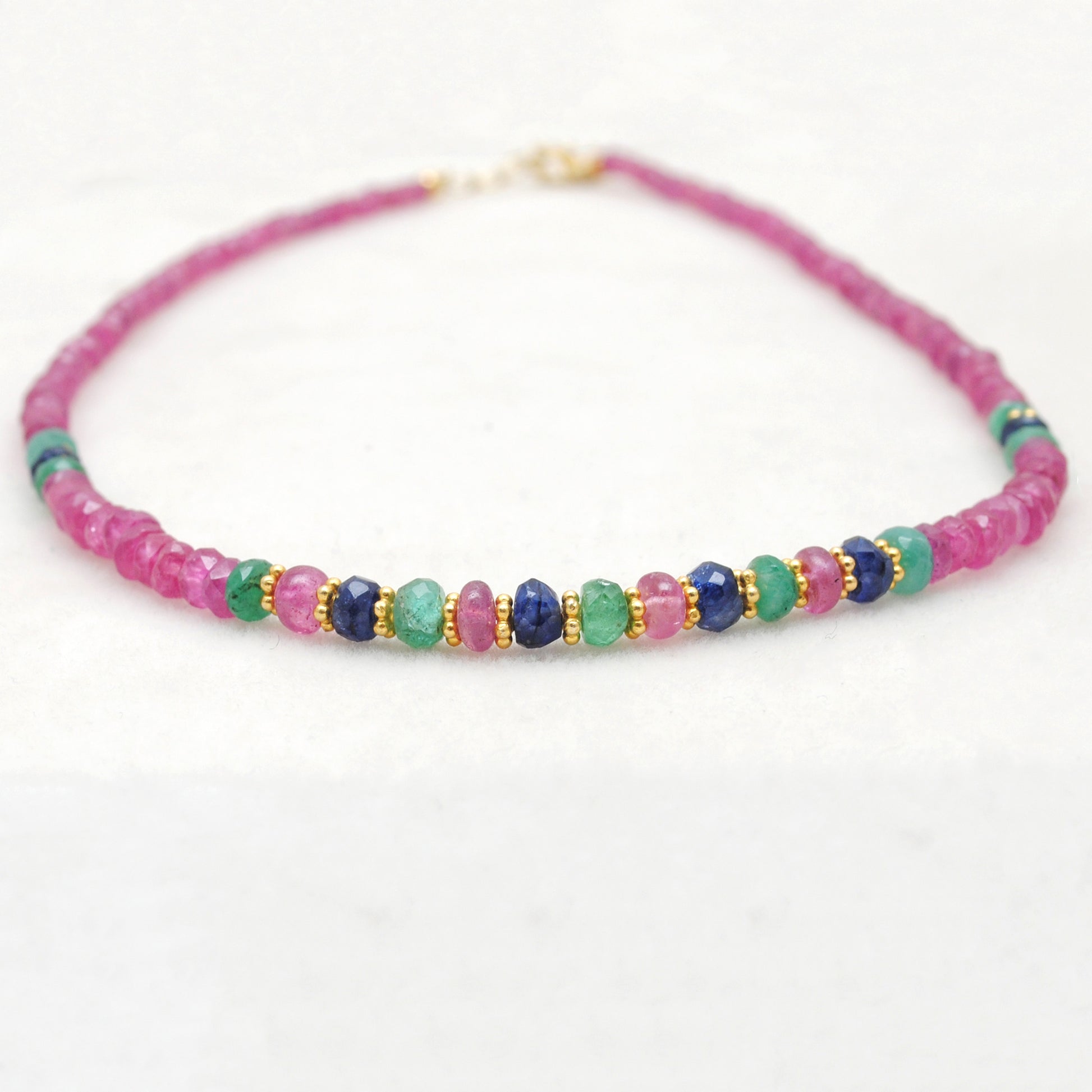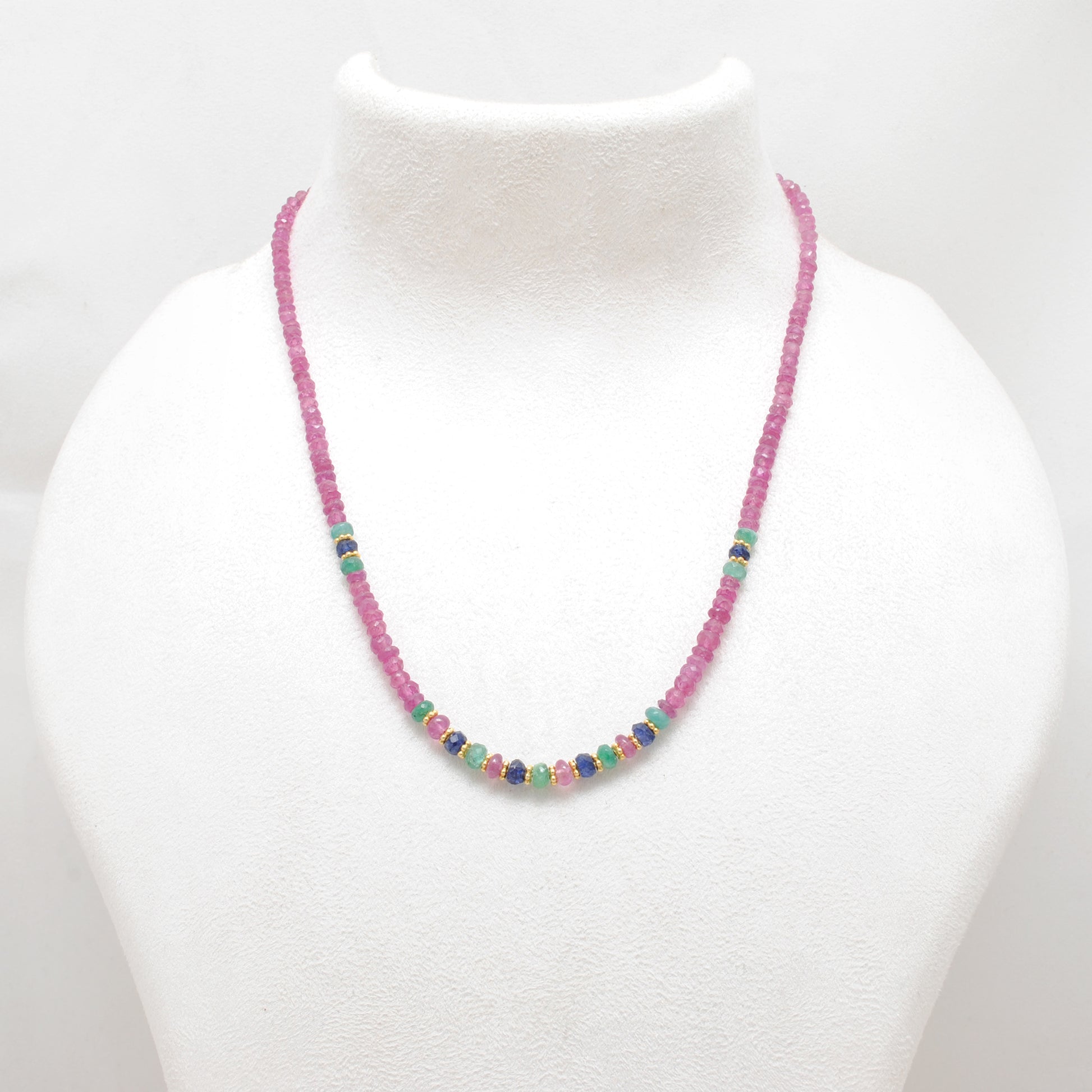 - Gemstones: Natural Ruby and Emerald Beads