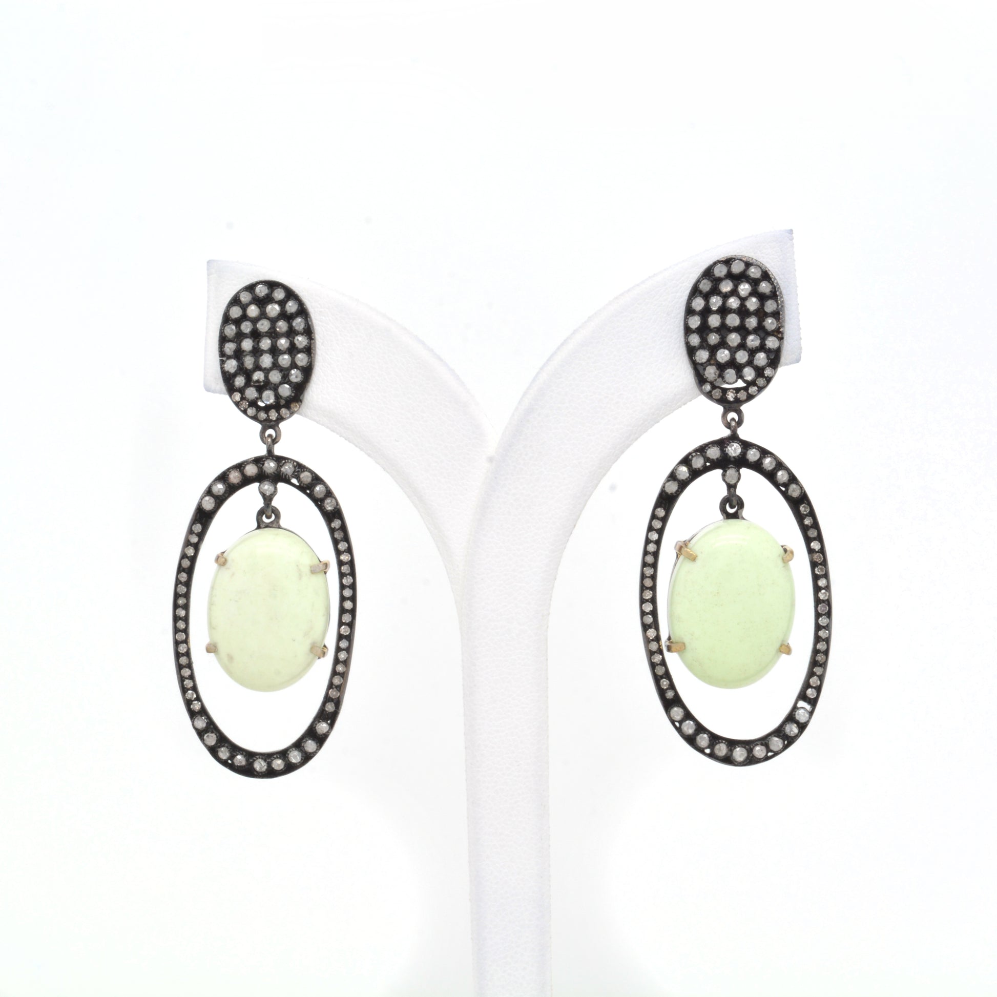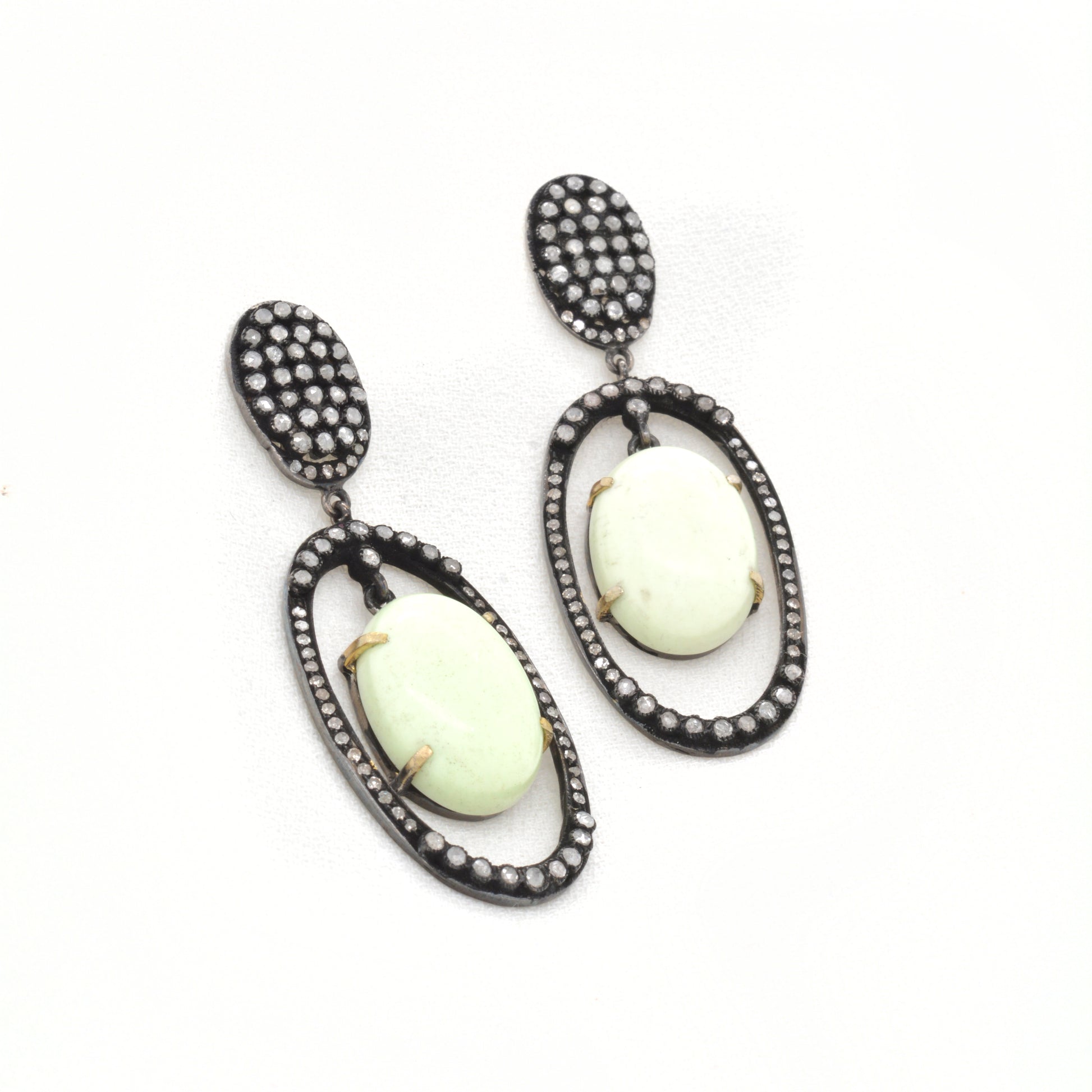 Elevate your style with these exquisite Oval Agate Dangle Earrings by Kanika Creations. Crafted in 925 sterling silver with black rhodium plating, each earring features a beautifully polished agate gemstone framed with shimmering diamond accents for a sophisticated sparkle. The classic oval drop design is both elegant and versatile, making it perfect for formal occasions or adding a touch of luxury to everyday wear.