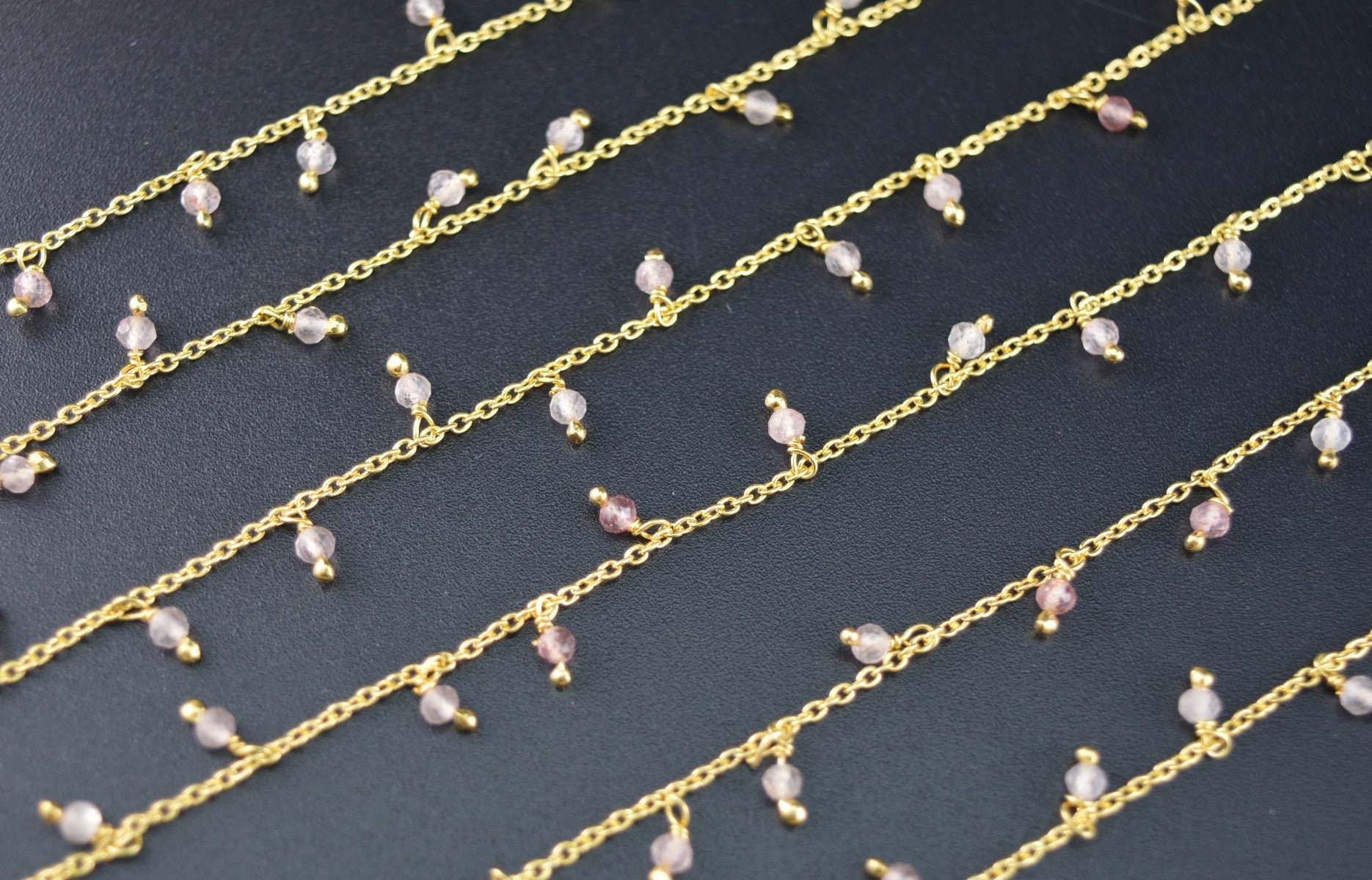 Quartz Rosary Chain - 925 Silver Gold, 2mm #3