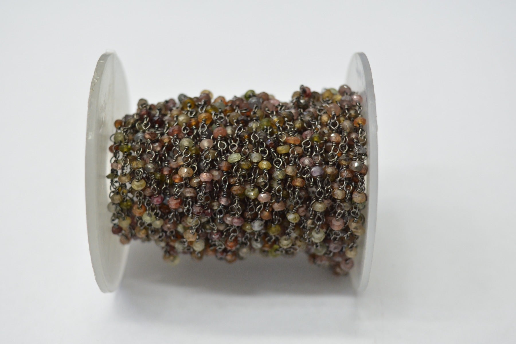 925 Sterling Silver Gold Plated Beautiful Wire Wrapped Rosary Chain With Roundel Shape 3.00mm Tundra Sapphire Stone. Sold By foot, ROS2-5583