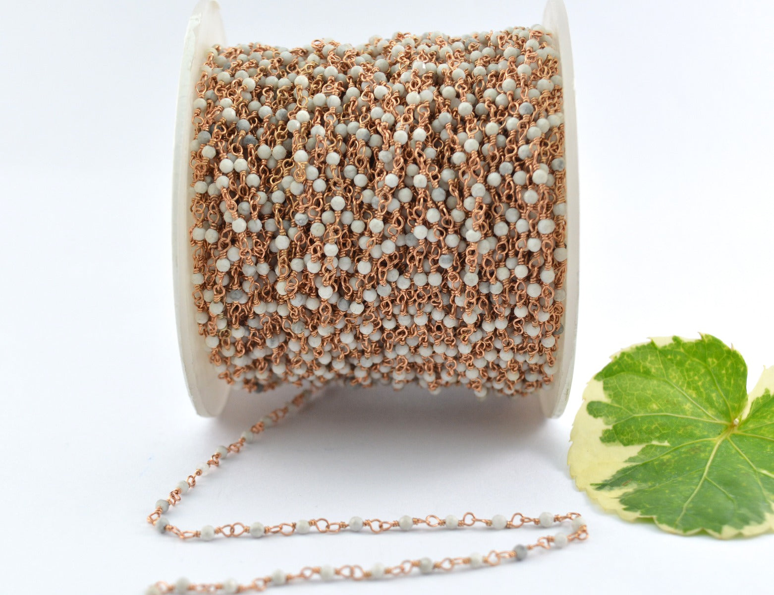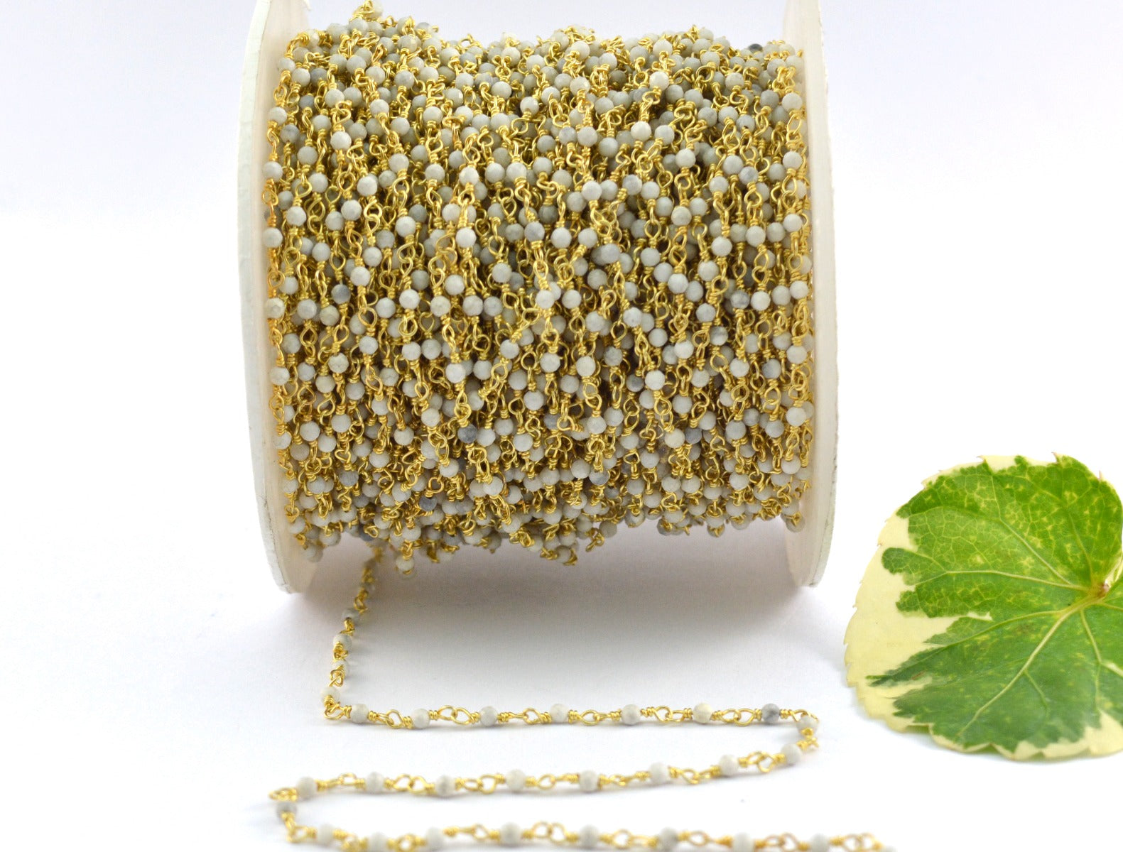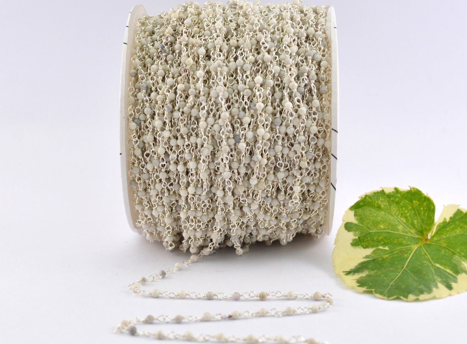 Please Complete your necklace or Chain design with amazing beads in 925 Sterling Silver Rosary Chain in Round Ball Shape With Howlite Stone. Order Now With best offers !