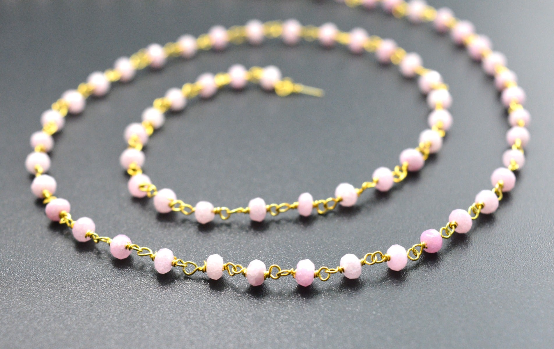 925 Sterling Silver Gold Rosary Chain can also be customized in silver, gold, rose gold, oxidized silver, and other types of wires and is available in various natural and glass stones as demanded.