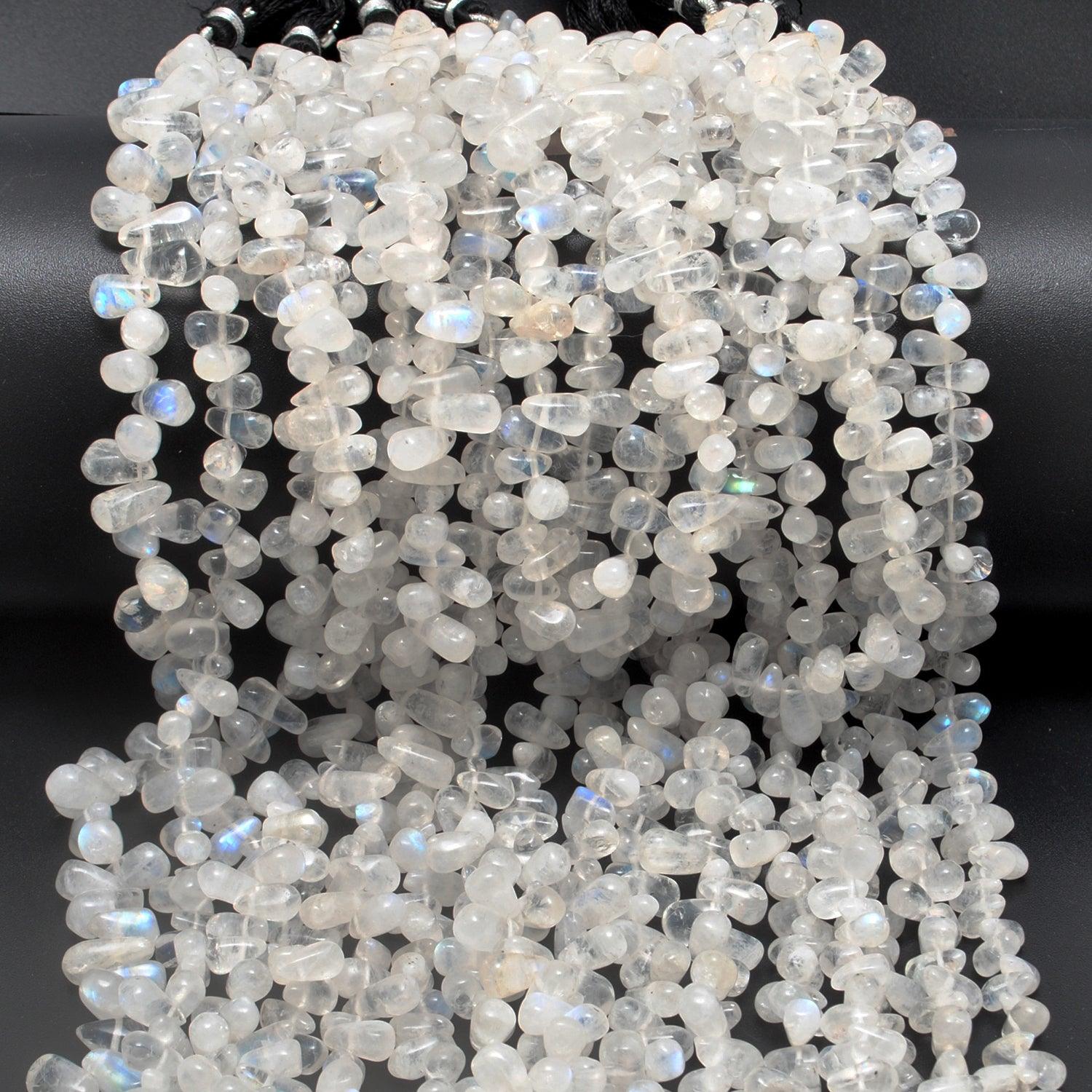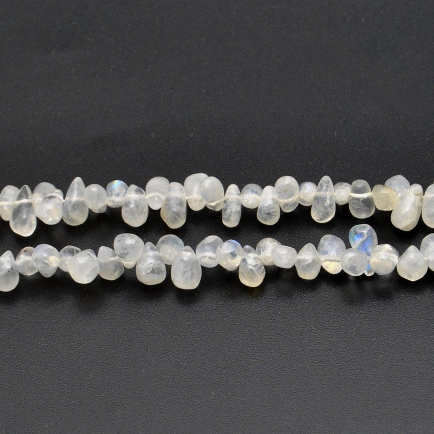 Discover the beauty of Rainbow Moonstone with our Plain Drop Shape Gemstone Strand. The 4x7-5x8mm sized stones showcase the unique iridescent sheen of this gem, perfect for creating stunning jewelry pieces. Elevate your designs with the natural allure and positive energy of Rainbow Moonstone.