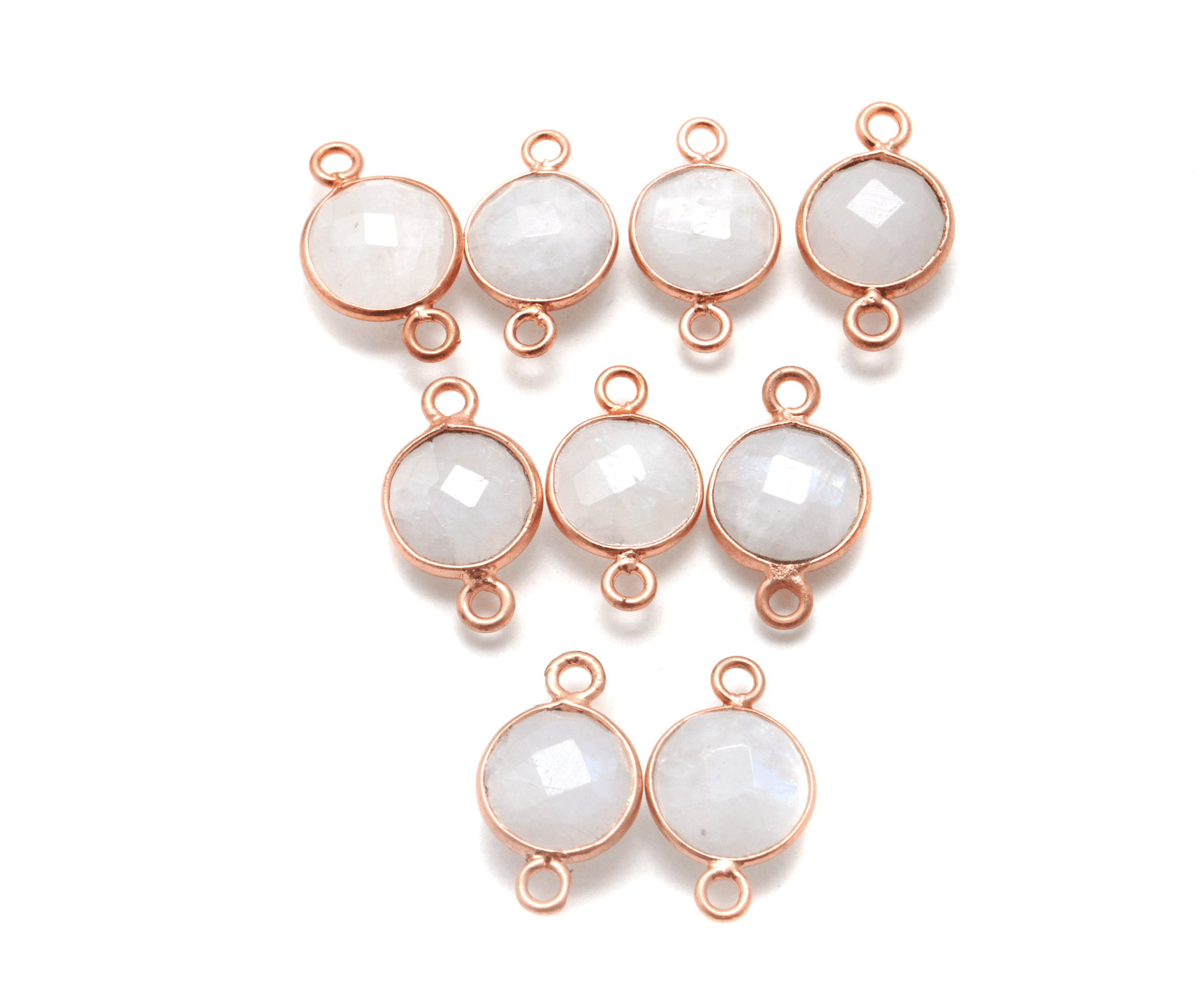 Rainbow Moonstone Round Rose Gold Plated Bezel Connector