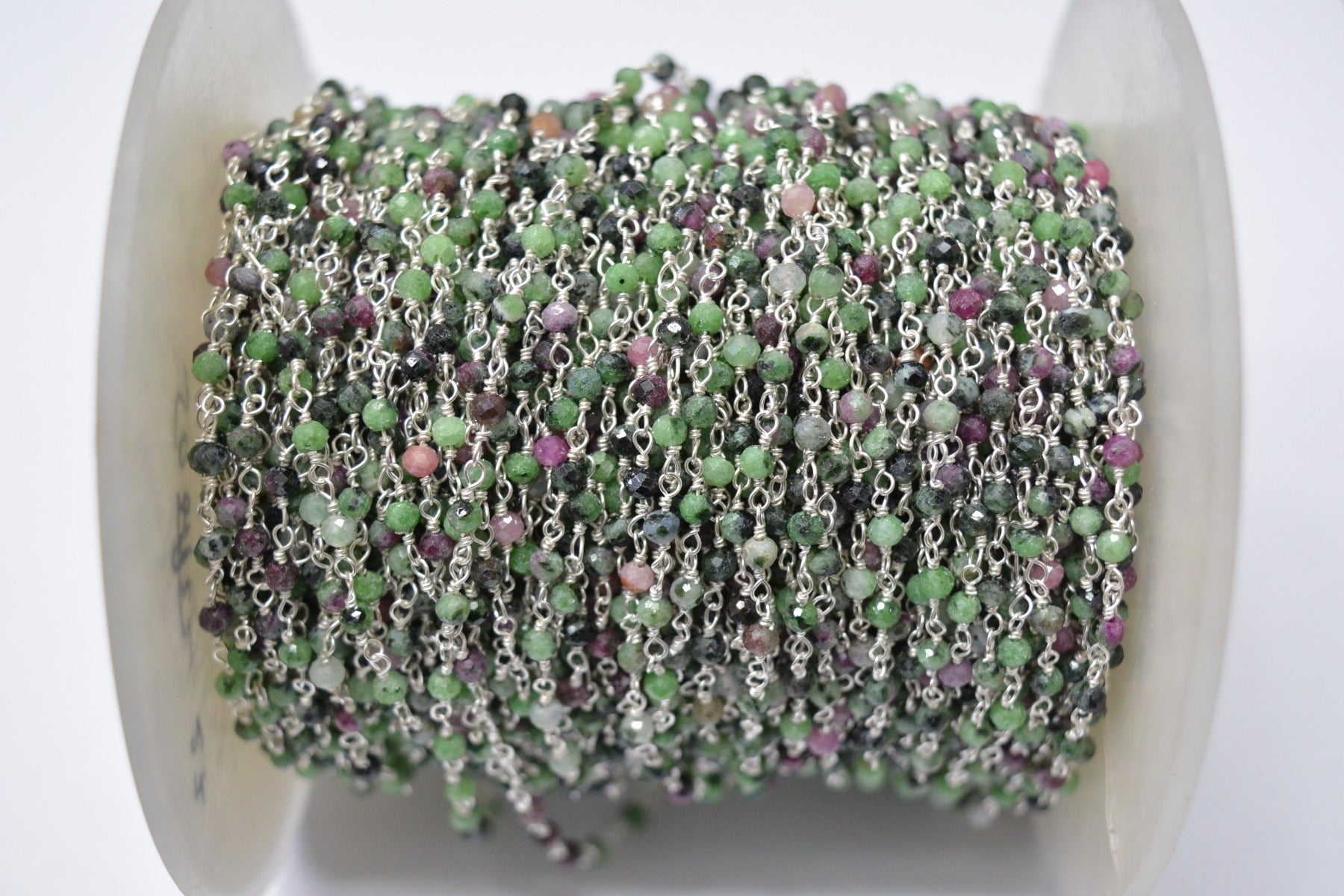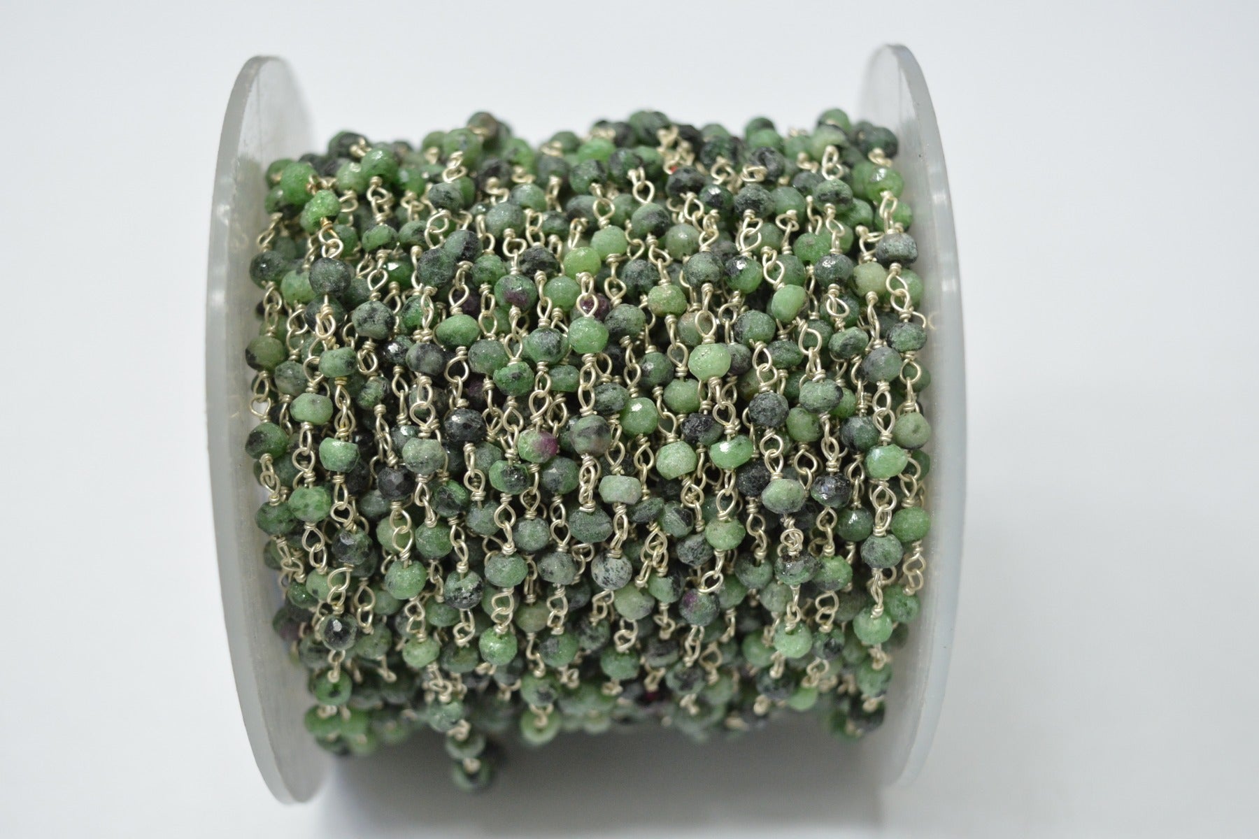 925 Sterling Silver Gold Plated Wonderful Wire Wrapped Rosary Chain With Roundel Shape 3.00mm Ruby Jobsite Stone. Sold By foot, ROS2-5600