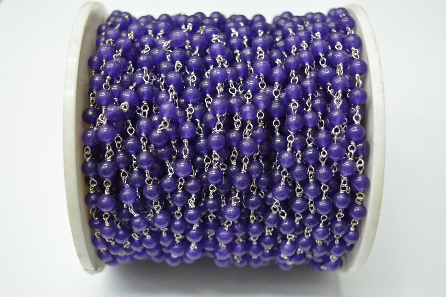 925 Sterling Silver Gold Plated Beautiful Wire Wrapped Rosary Chain With Roundel Shape 3.00 mm Ruby Jade+Pearl Stone. Sold By foot, ROS2-5773