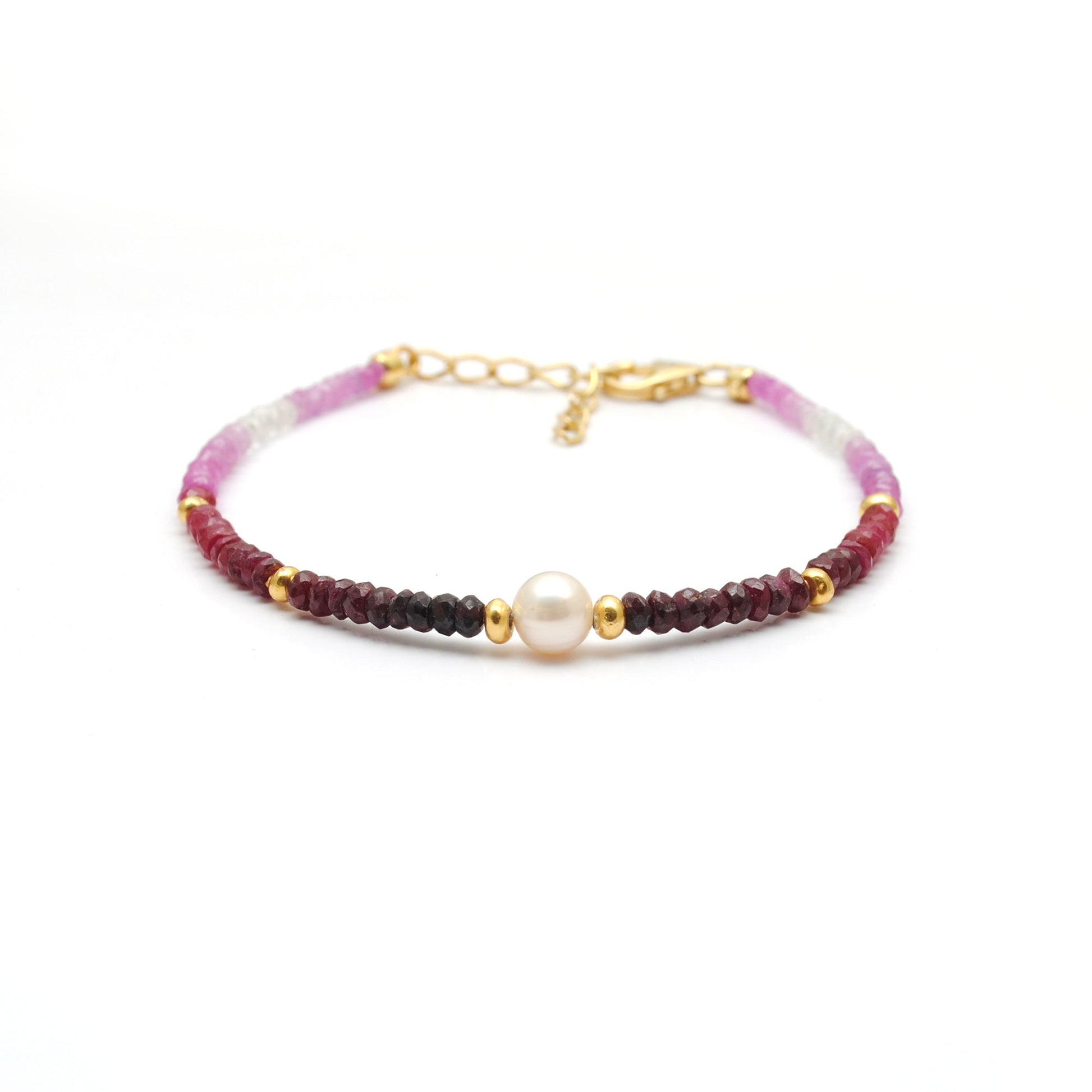 Shaded Ruby Pearl Bracelet, Gold-Plated 925 Sterling Silver, Handmade Gemstone Jewelry