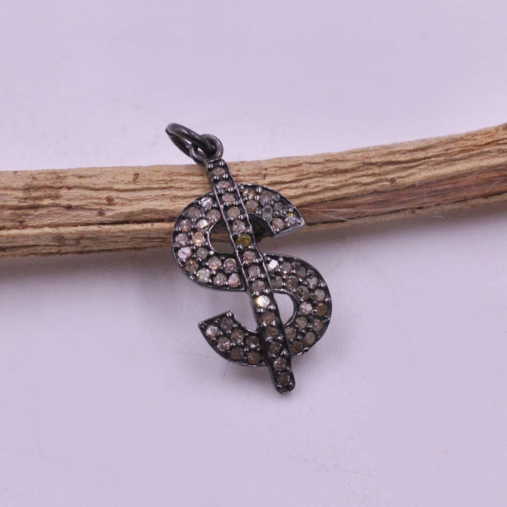 Silver Pave Diamond Dollar Sign Charm Pendant