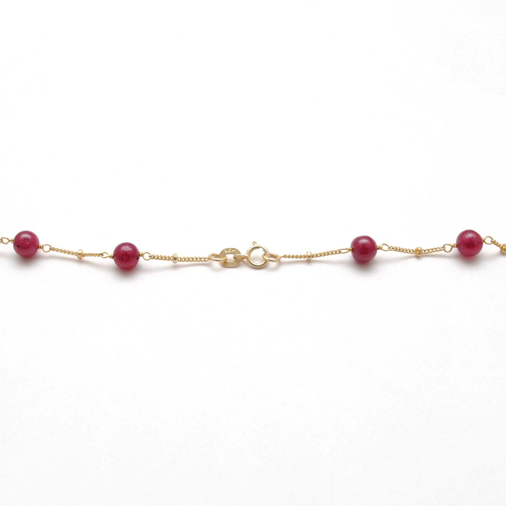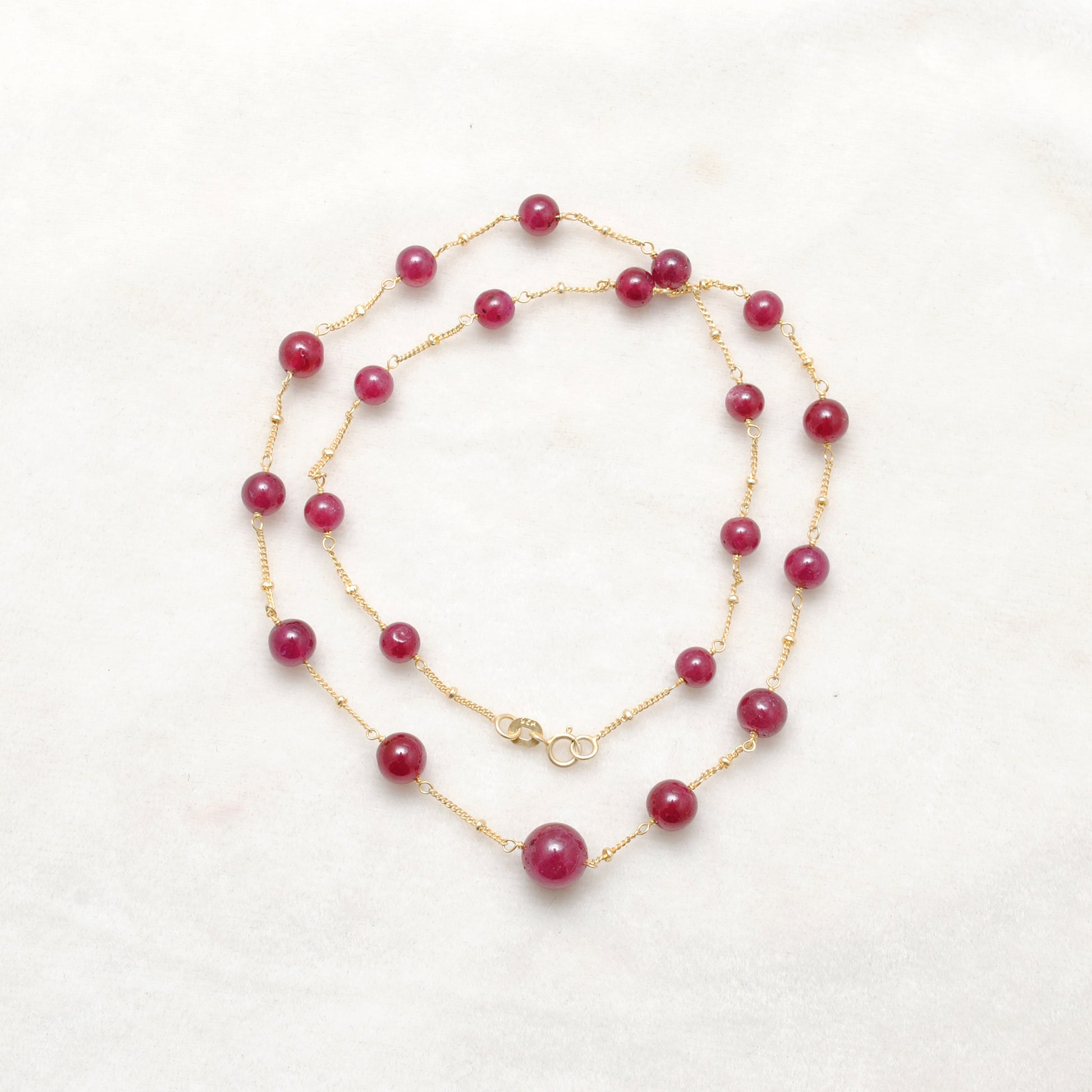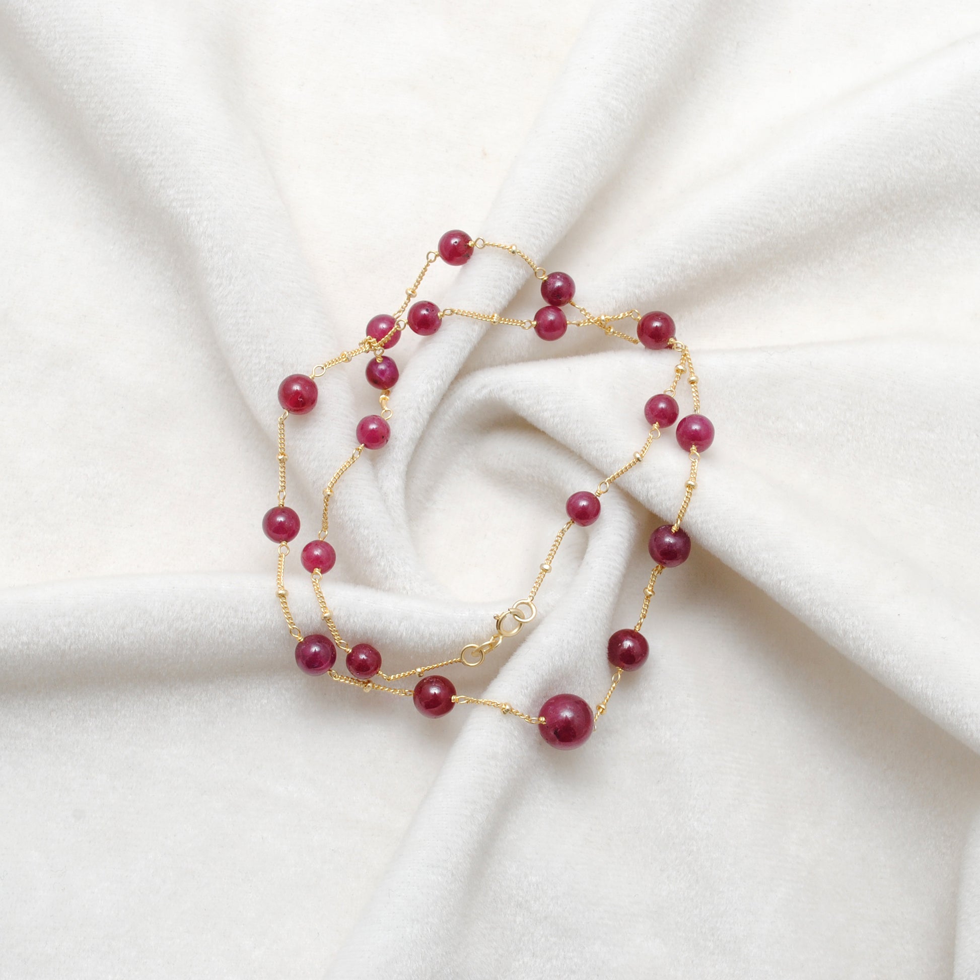 Sterling Silver Ruby Beads Necklace – Ruby 18k Gold Plated Beads Necklace – Round Ruby Beads Sterling Beads Women Necklace