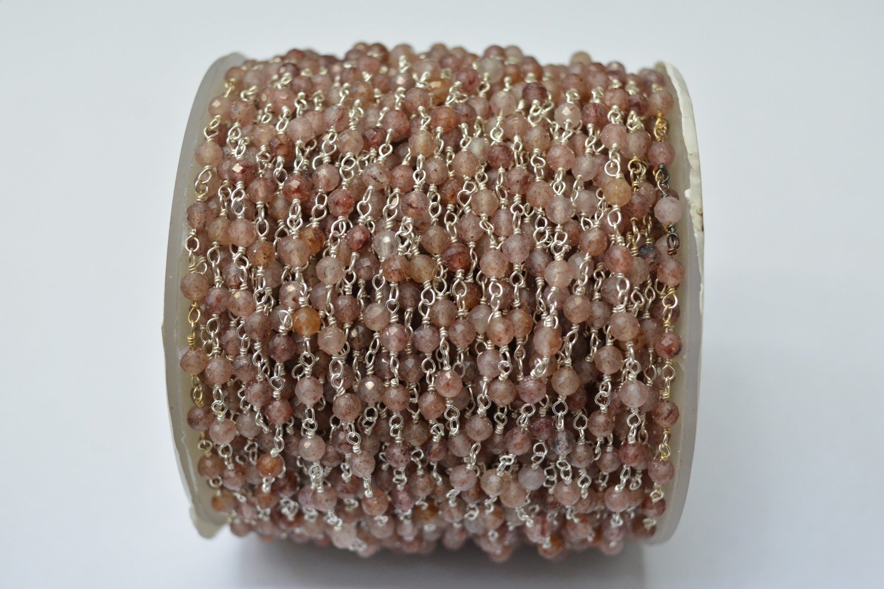 925 Sterling Silver Gold Plated Wire Wrapped Rosary Chain With Roundel Shape 3.00mm Strawberry Stone. Sold By foot, ROS2-5618
