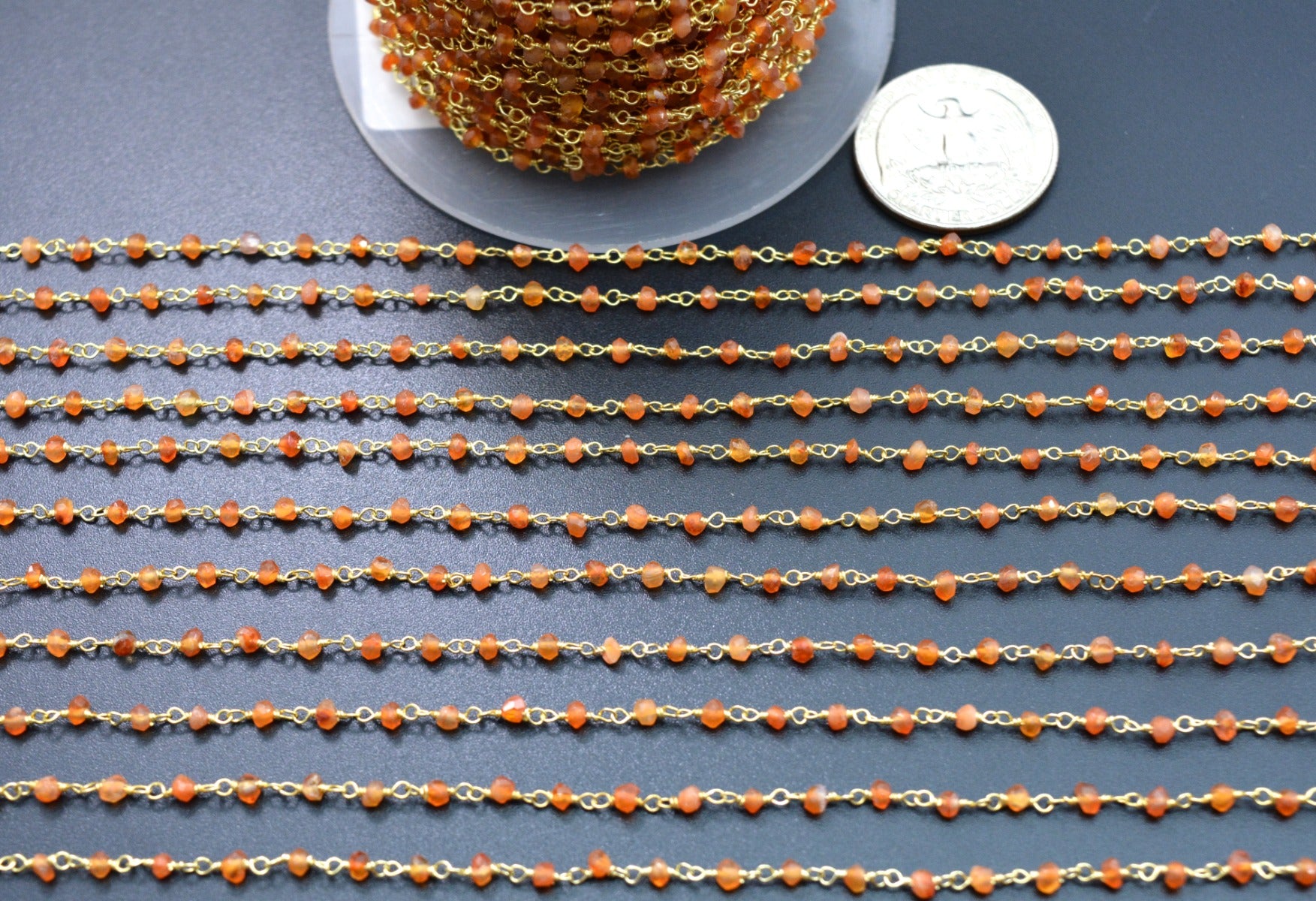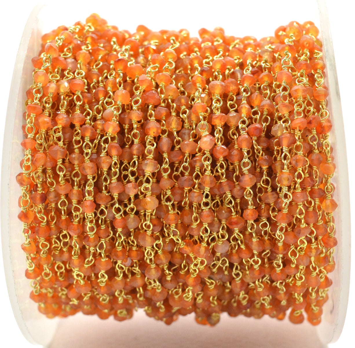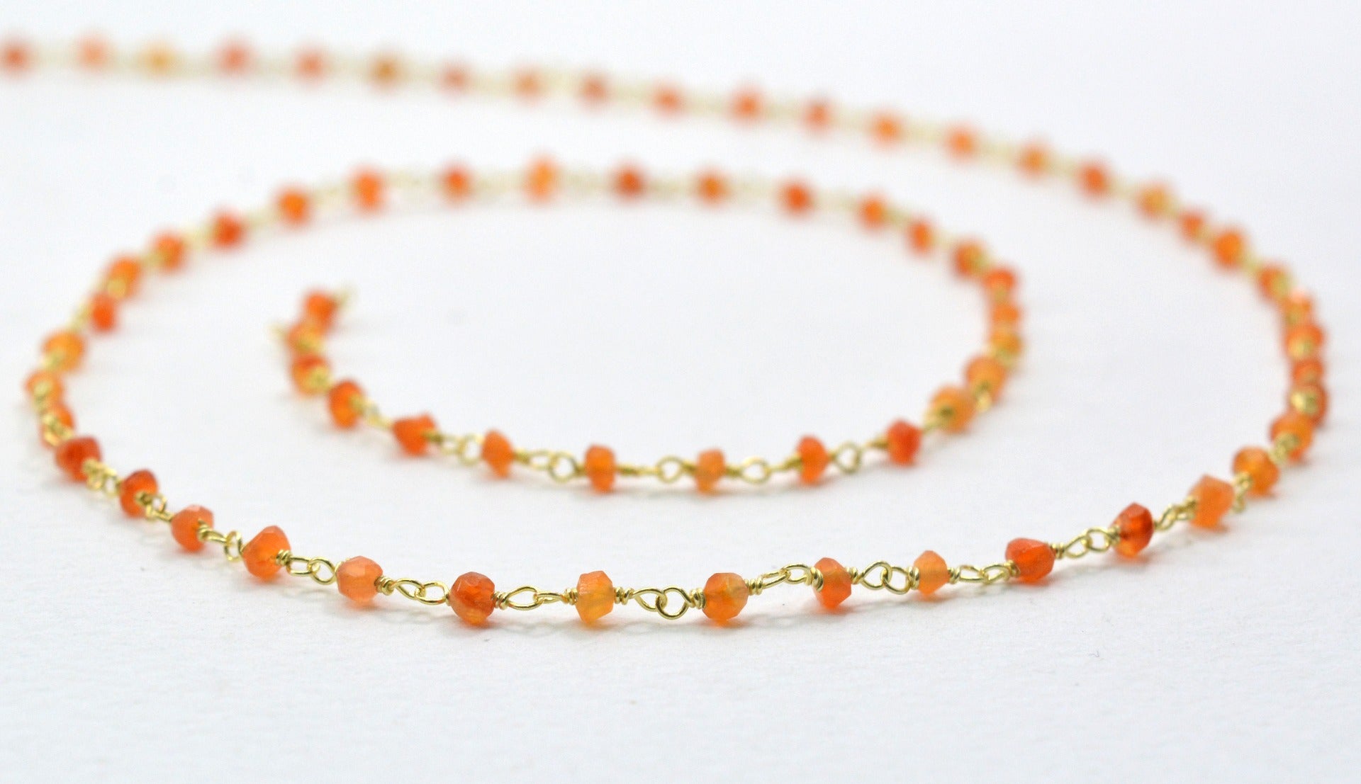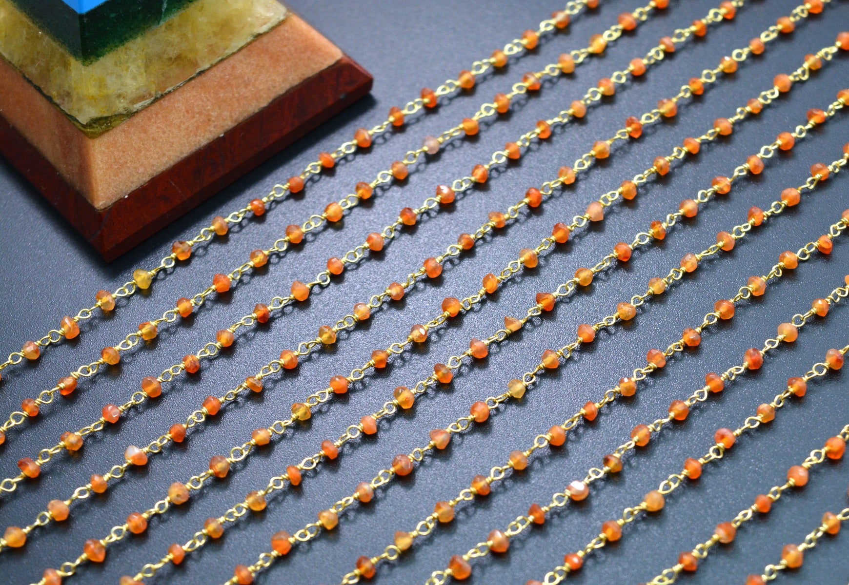 Stone Rosary Chain - 925 Silver Gold, 3mm