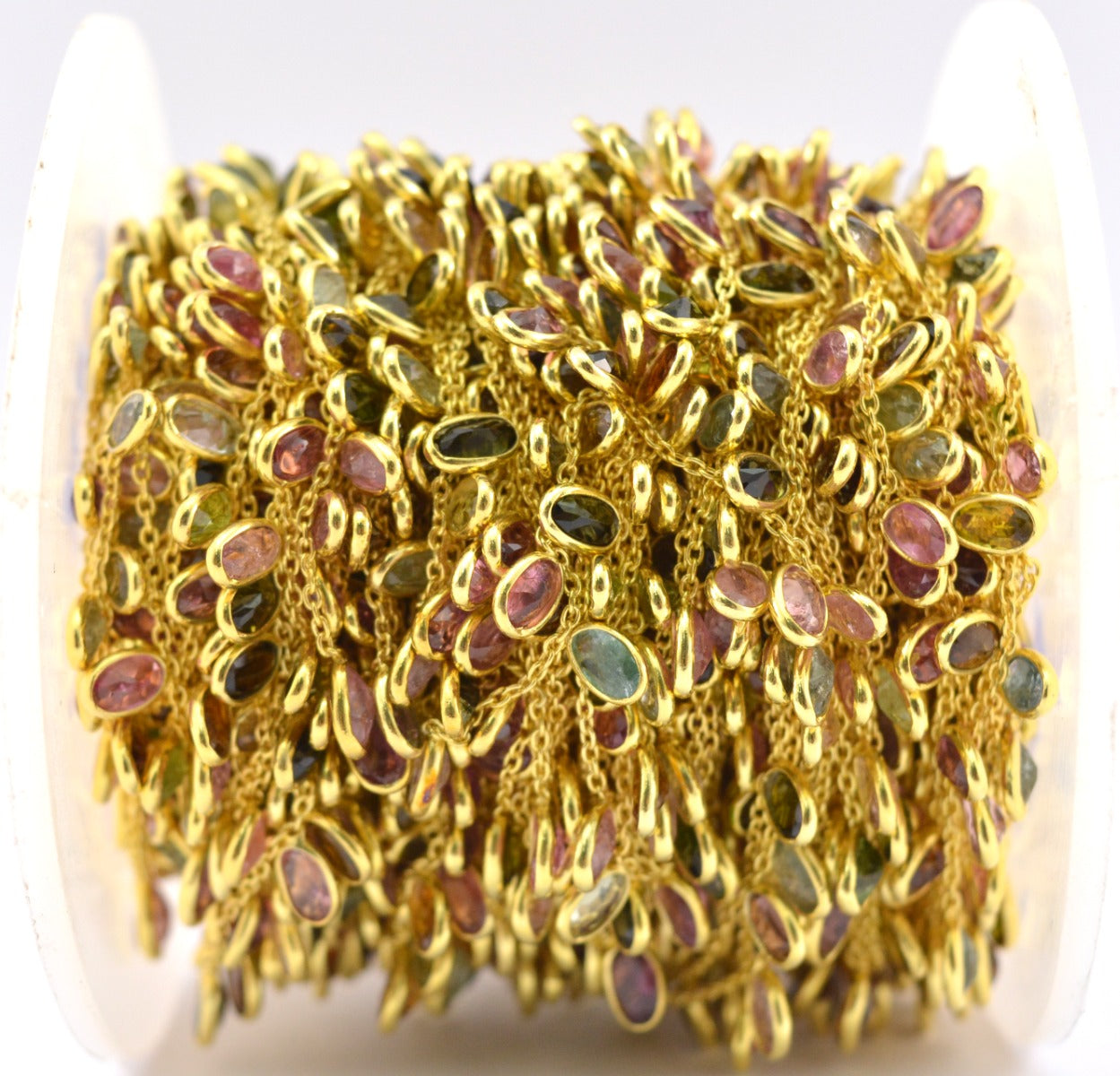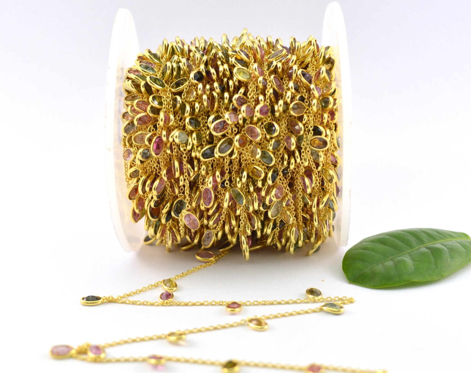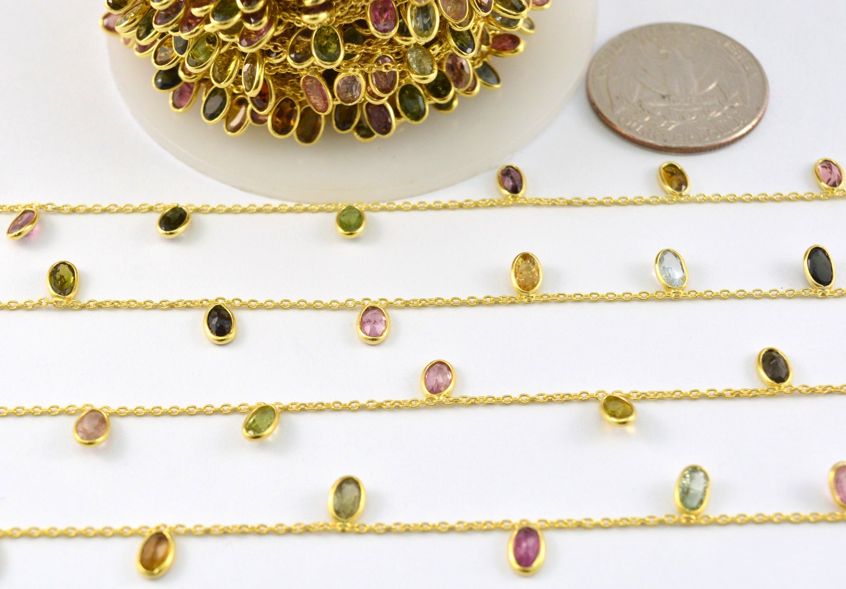 Stone Rosary Chain - 925 Silver Gold, 4.00mm