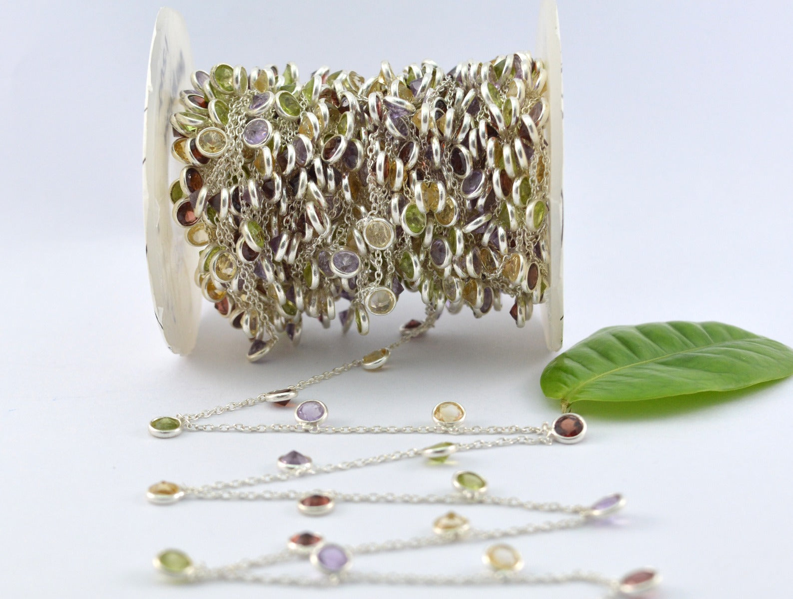 Stunning 925 Silver Gold Rosary Chain - Stone 4mm