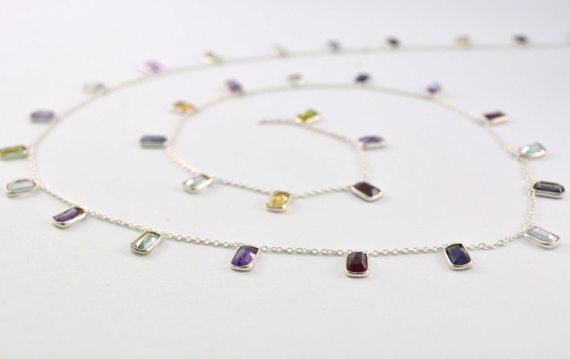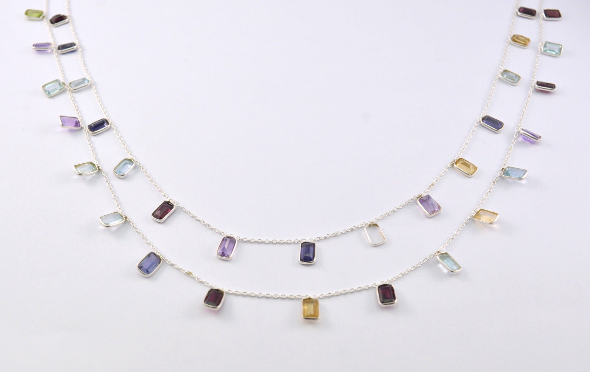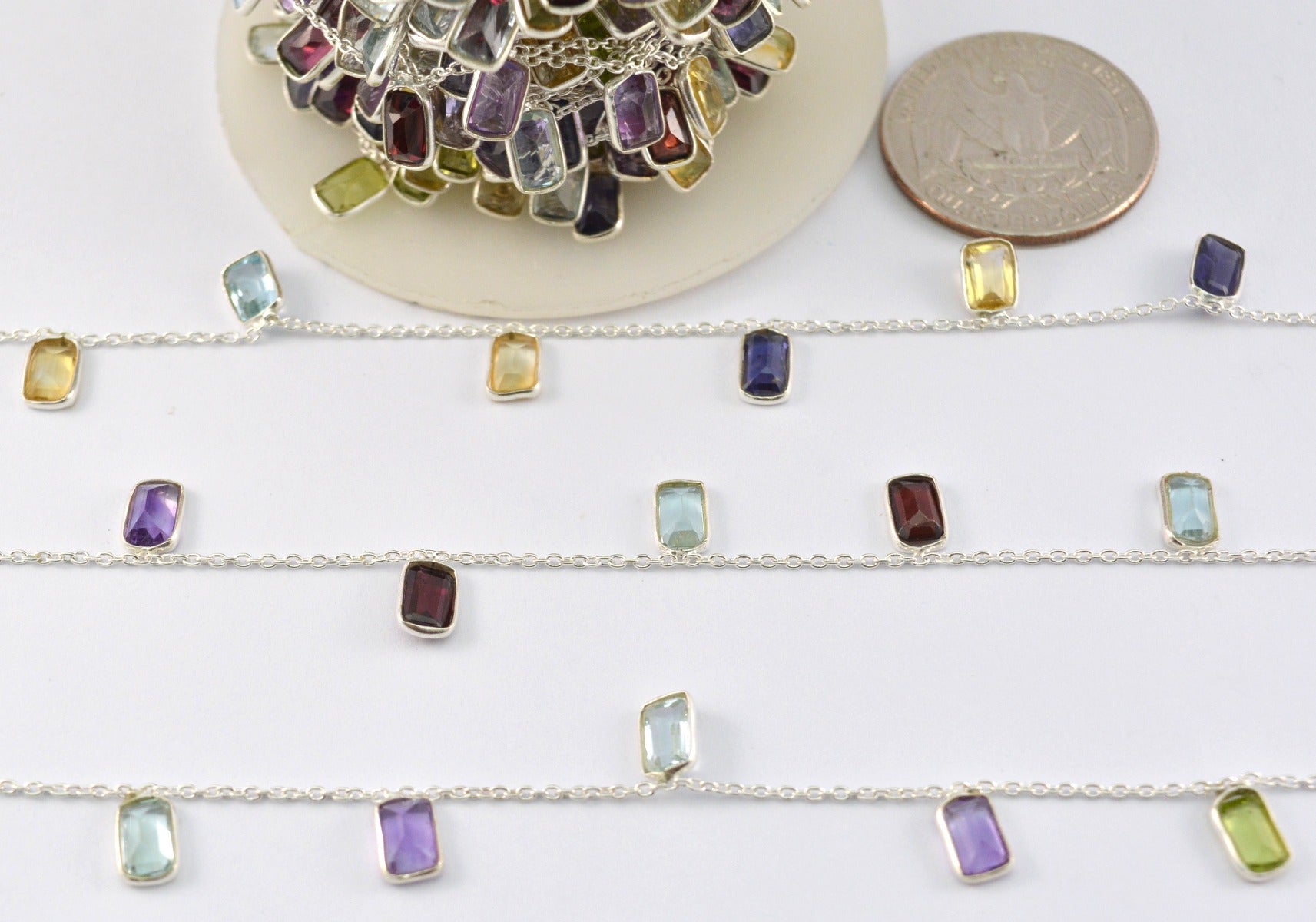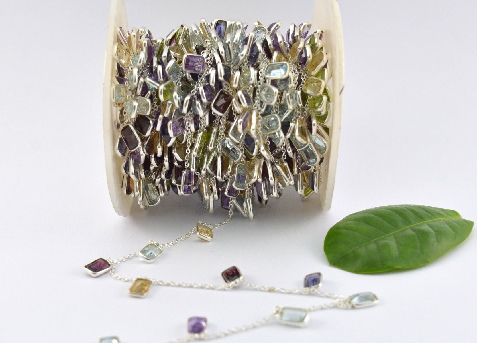 Stylish 925 Silver Gold Rosary Chain - Multi Stone 4.00mm