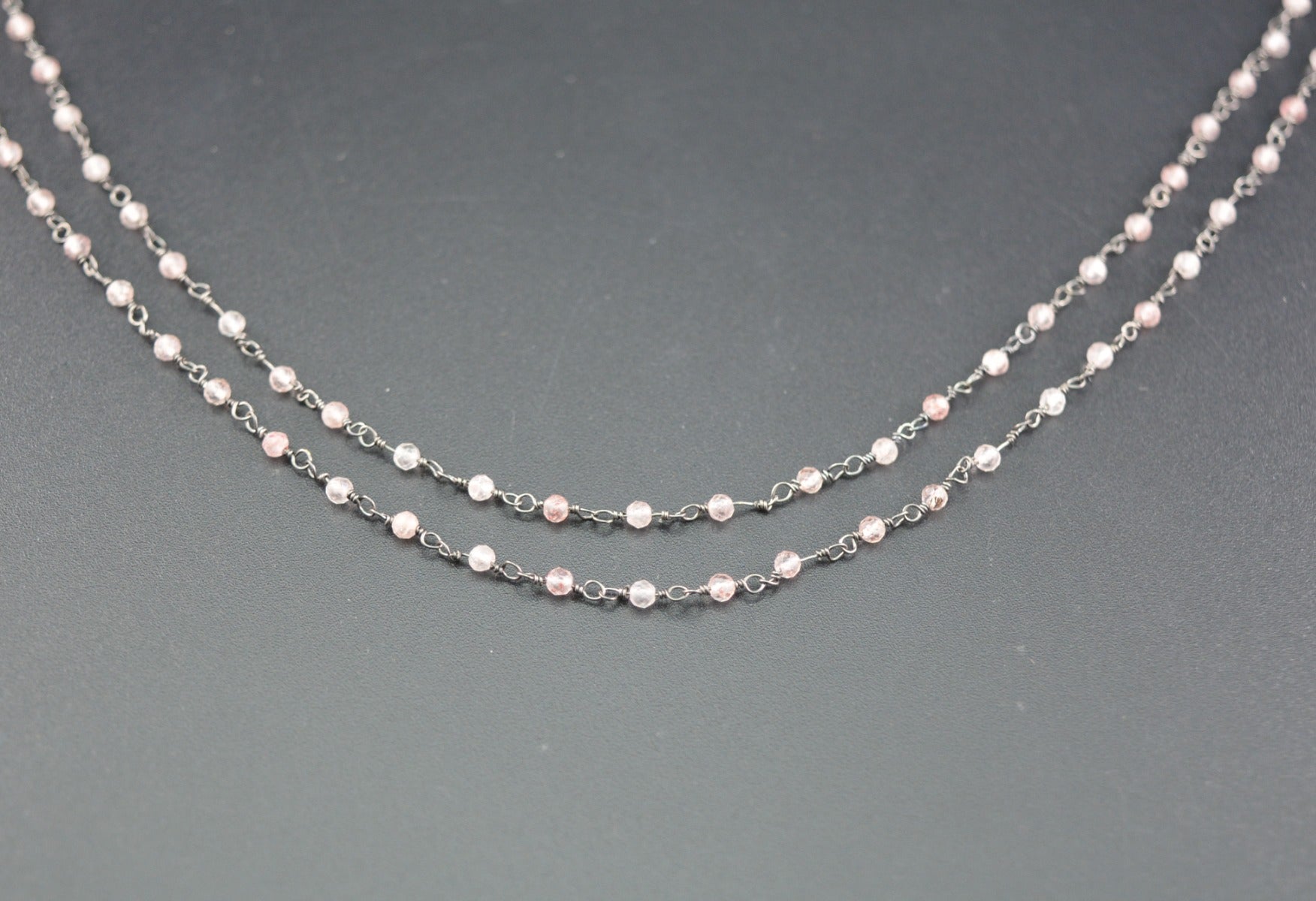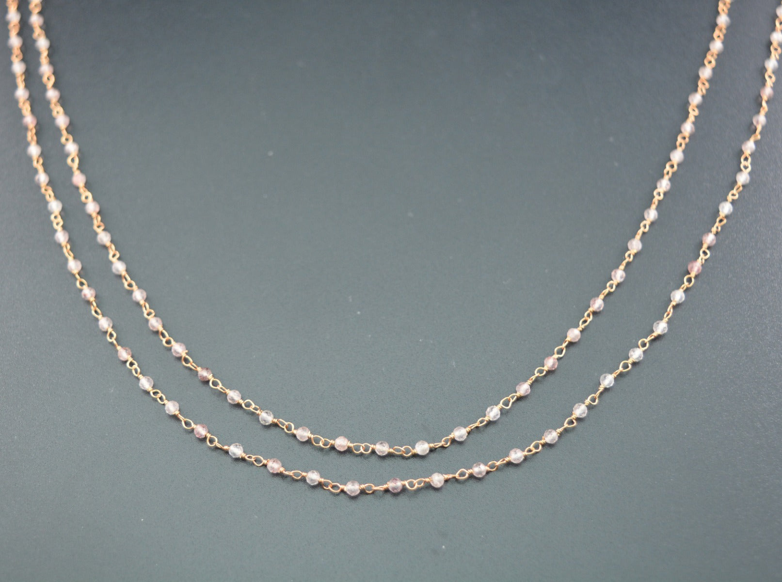 Stylish Rosary Chain - Quartz 925 Silver Gold 2mm