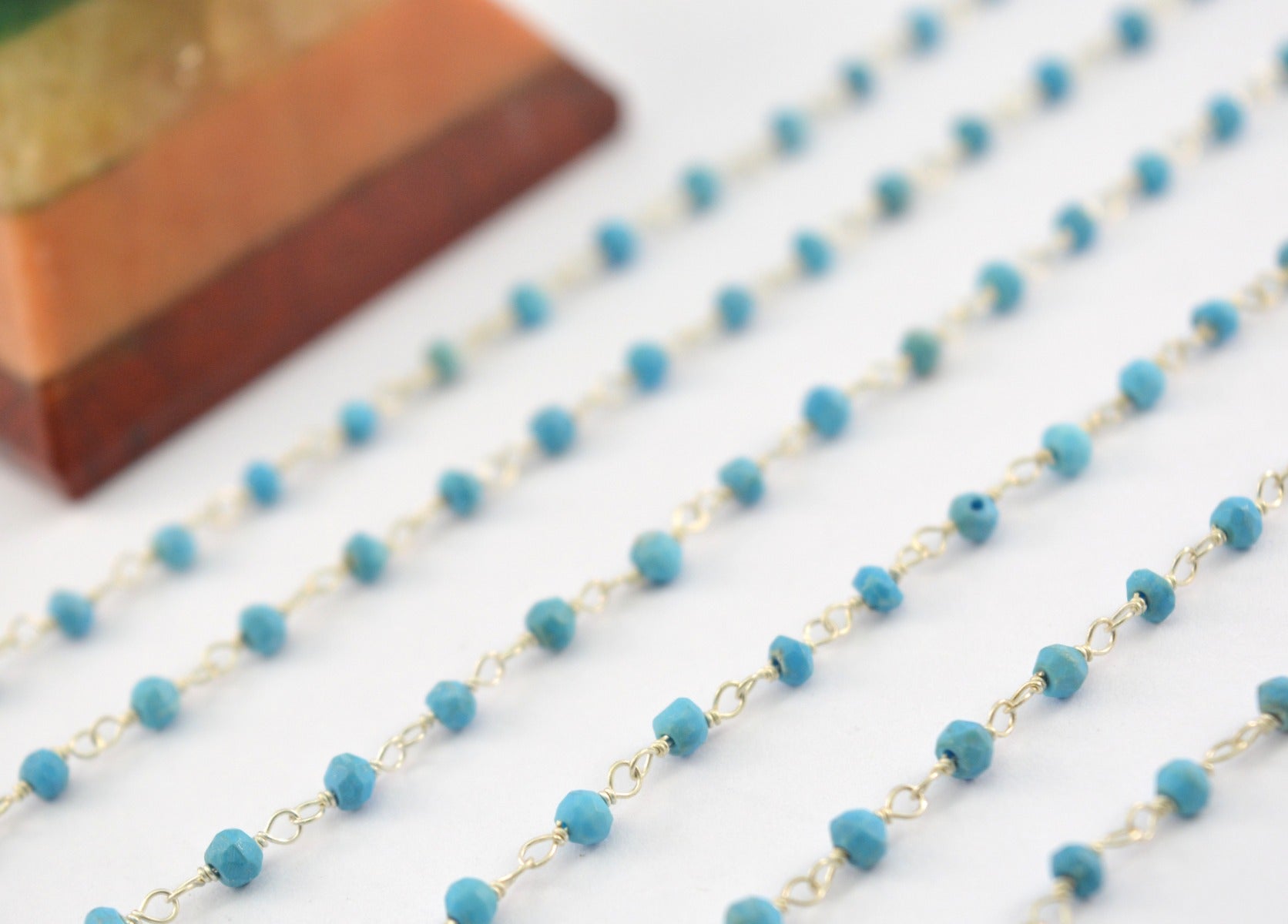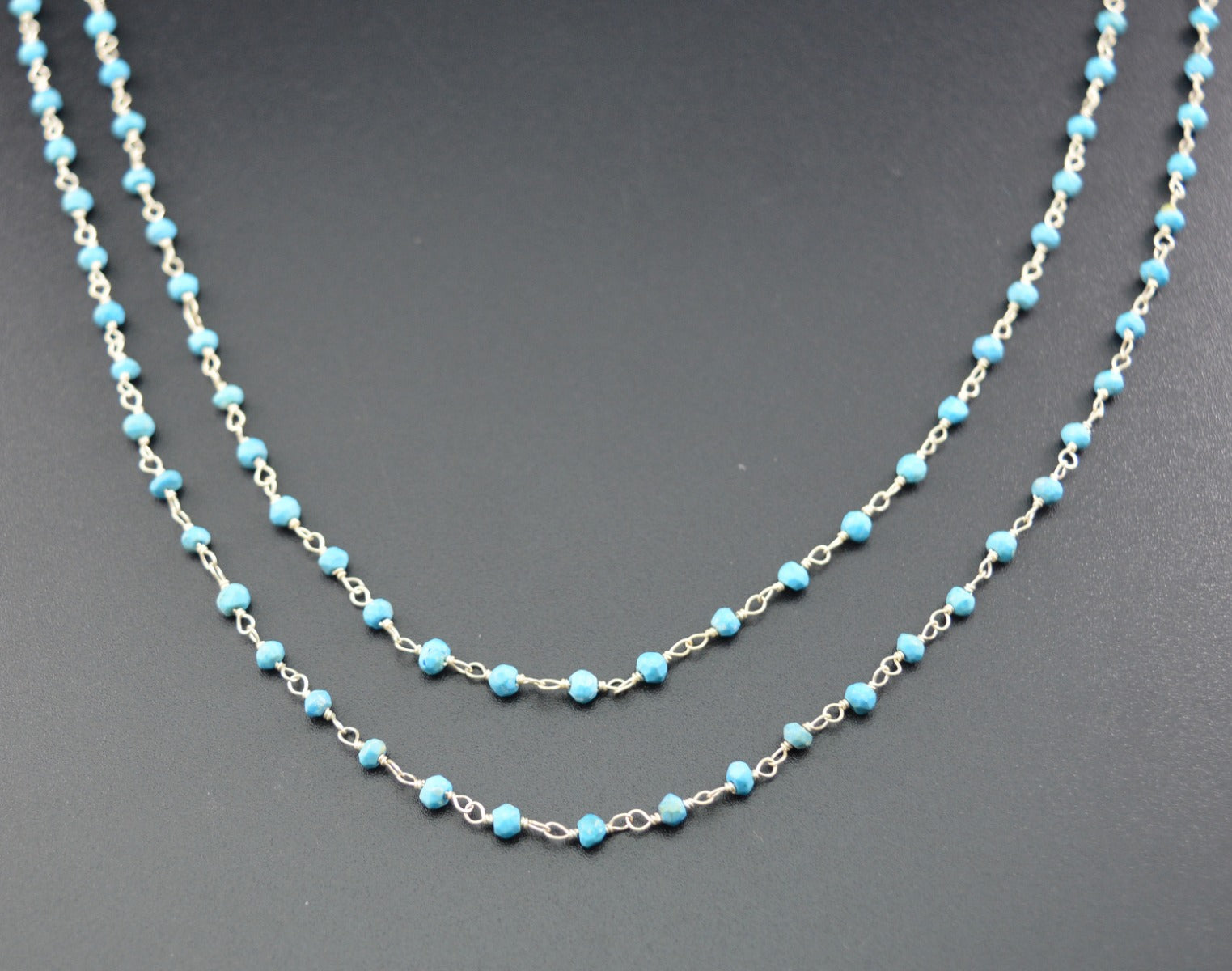 Stylish Turquoise Rosary Chain in 925 Silver - 2mm
