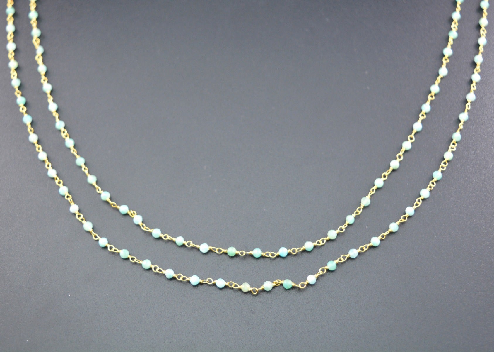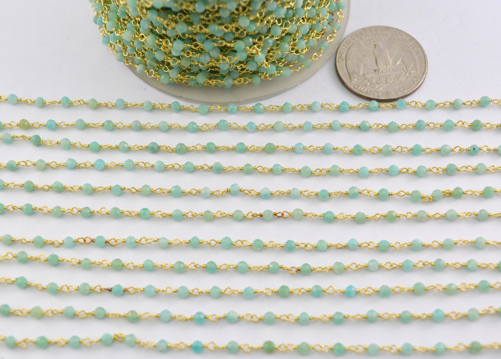Trendy 925 Silver Gold Rosary Chain - Amazonite 2mm