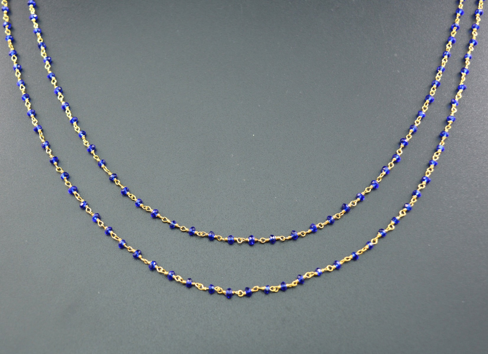 Trendy 925 Silver Gold Rosary Chain - Chalcedony 2mm