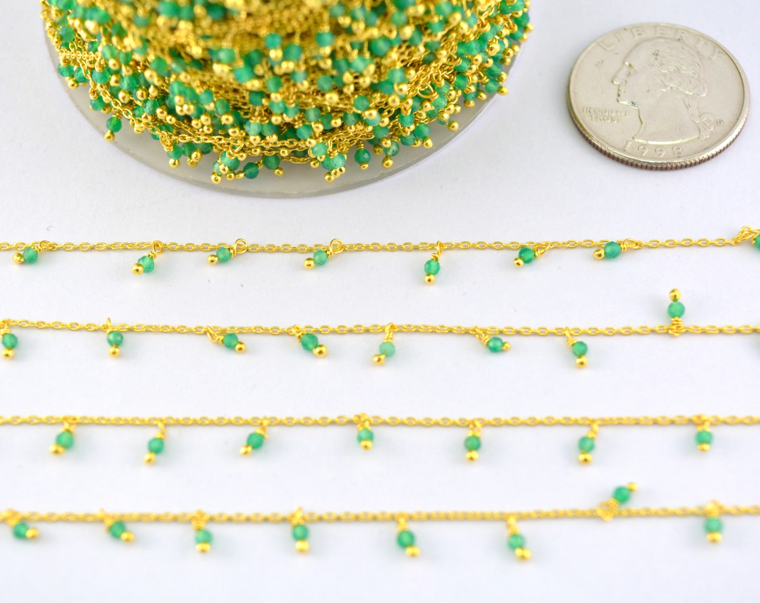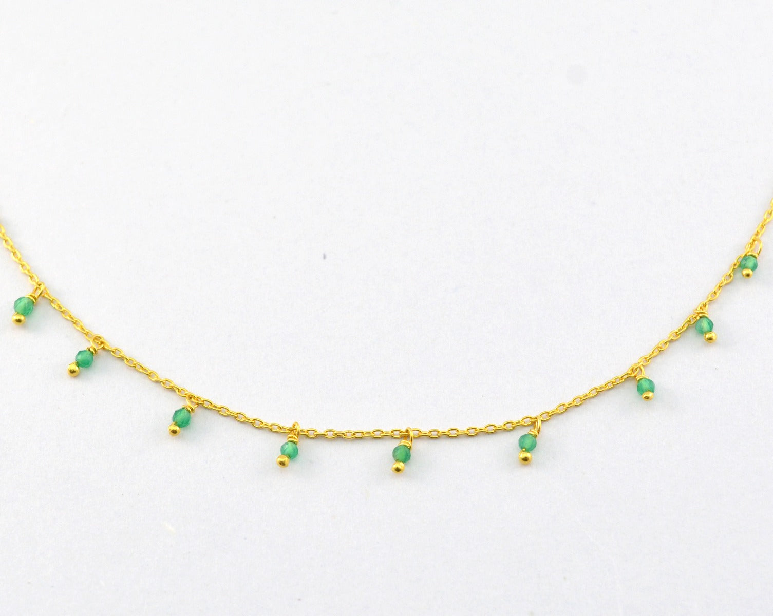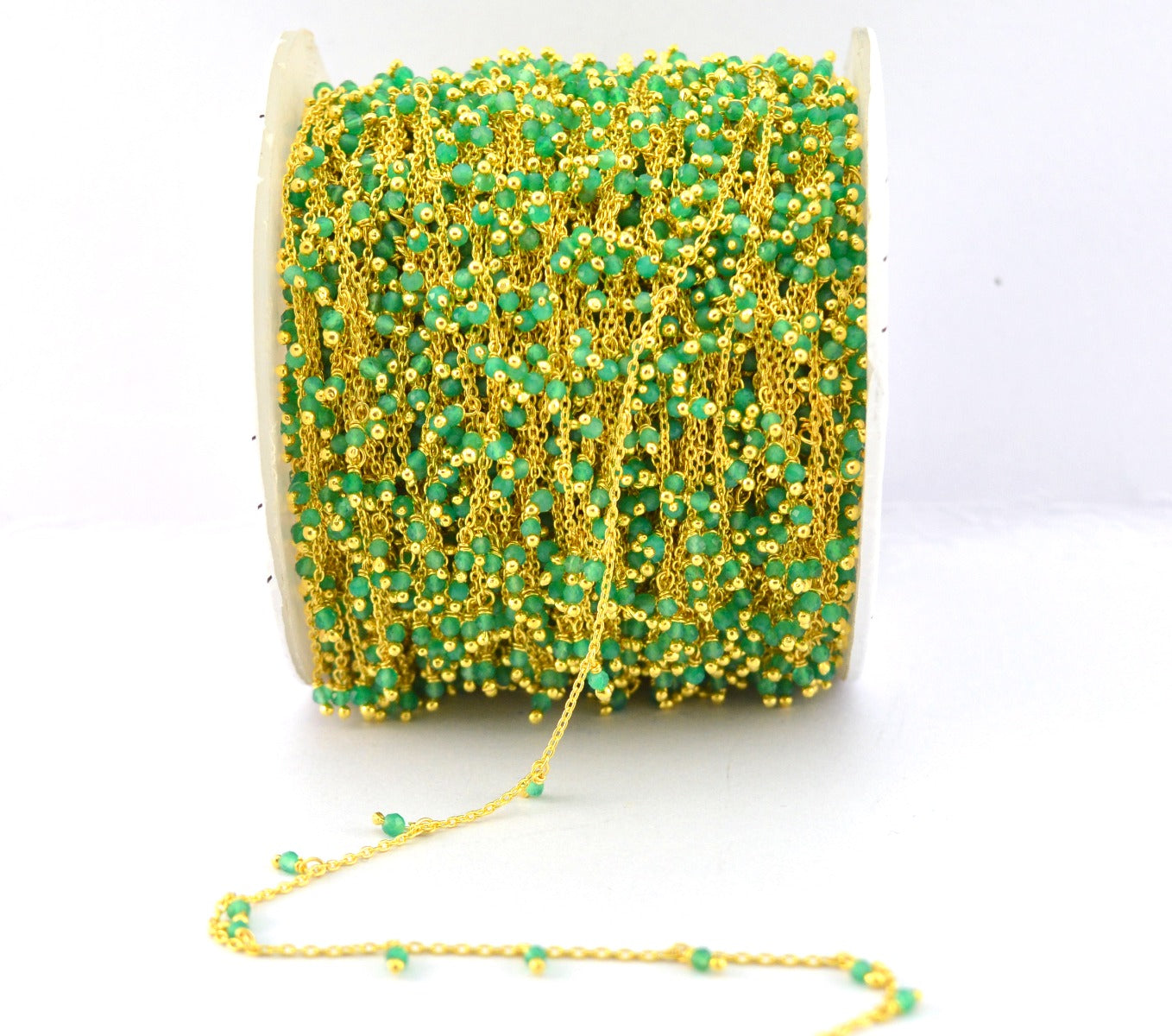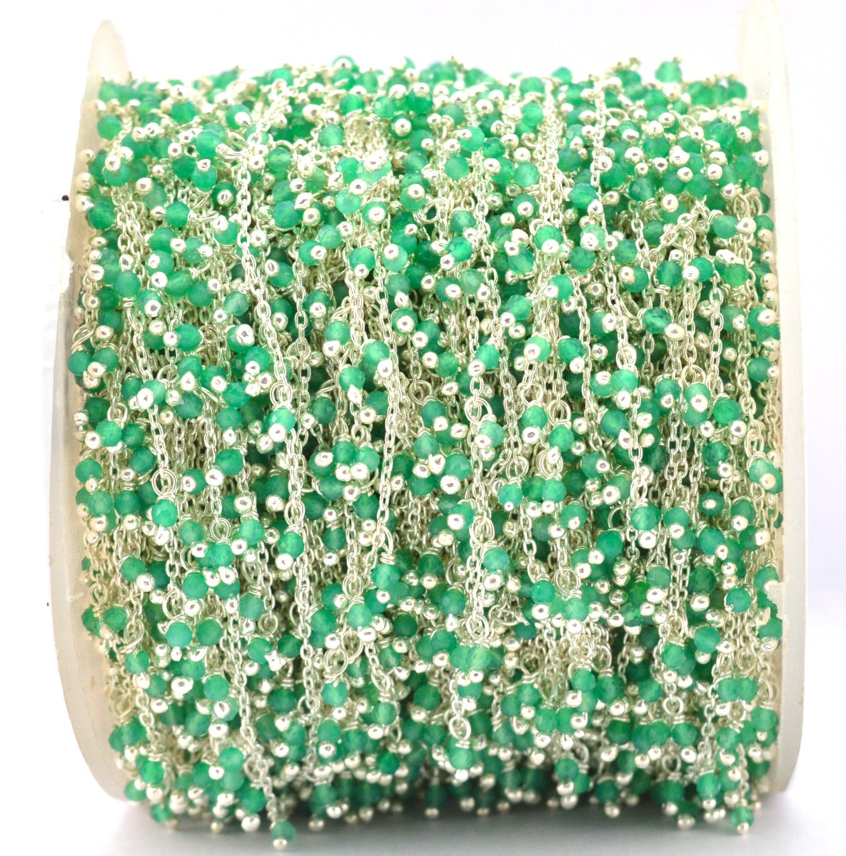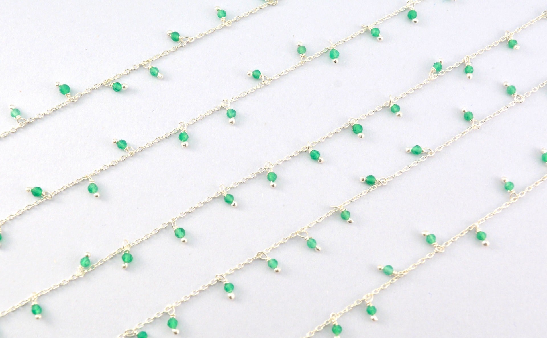 Trendy Rosary Chain - Onyx 925 Silver Gold 2mm