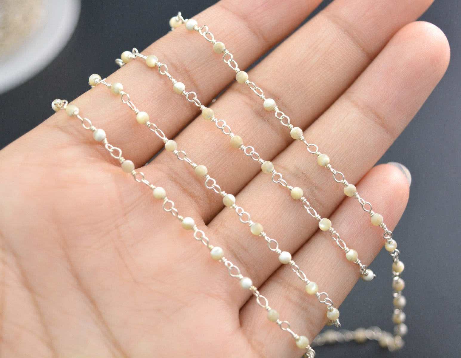 Trendy Rosary Chain - Pearl 925 Silver 2mm