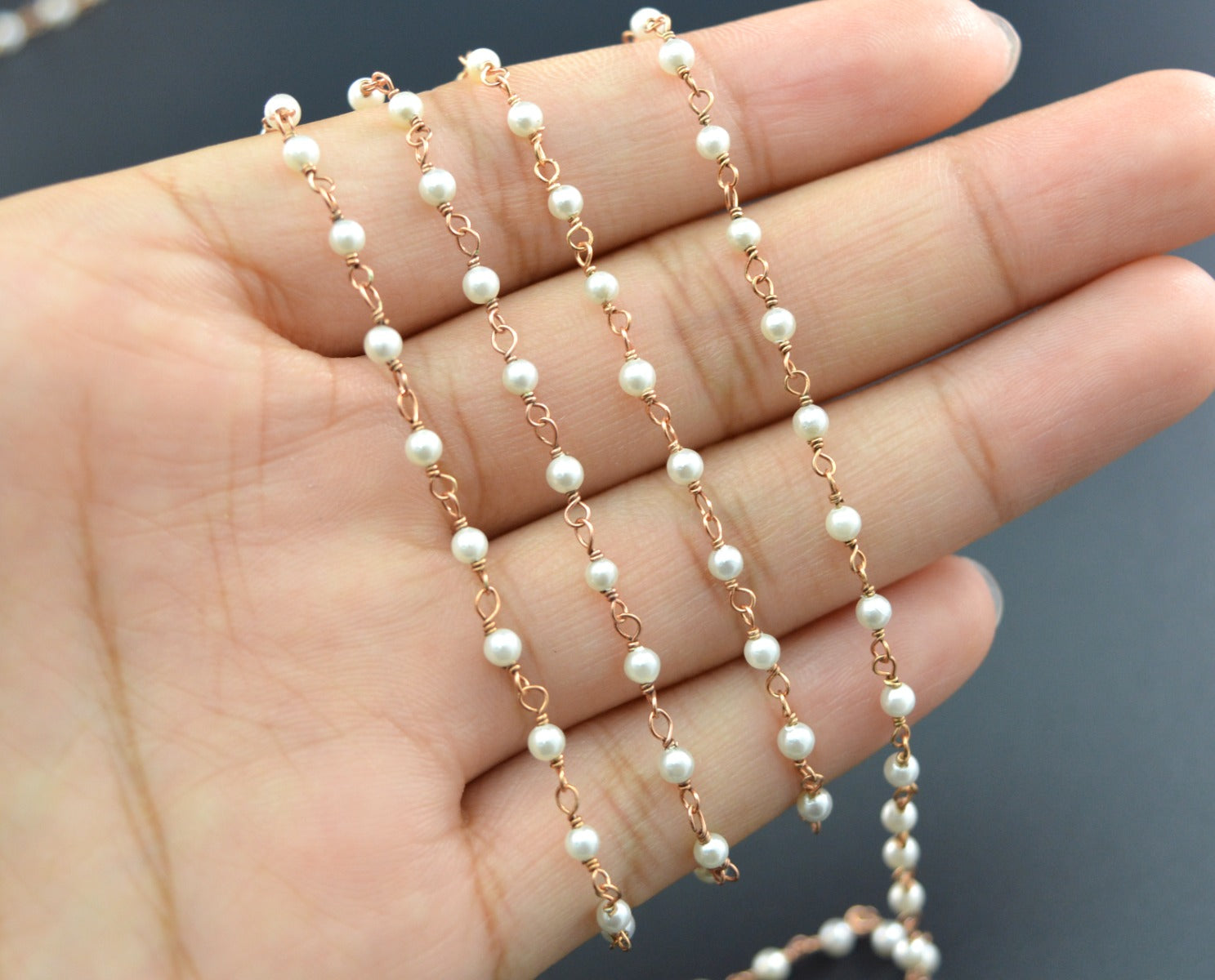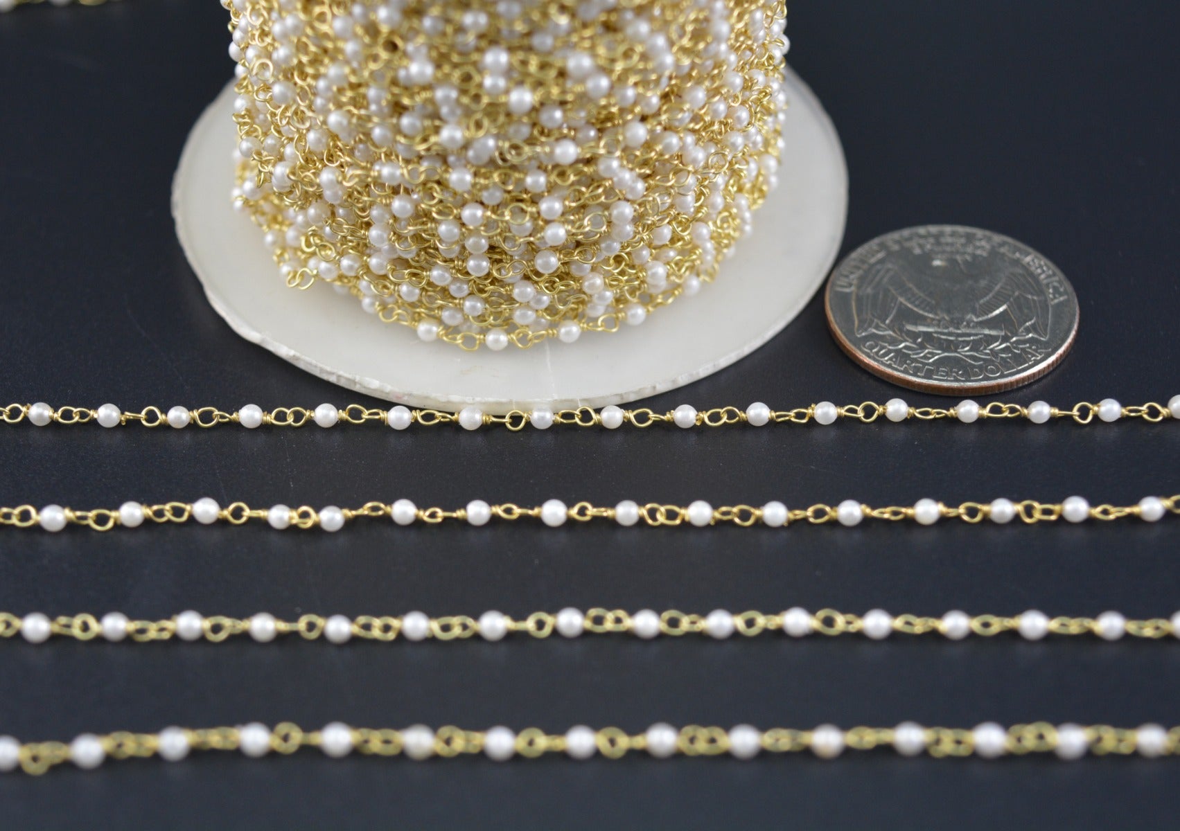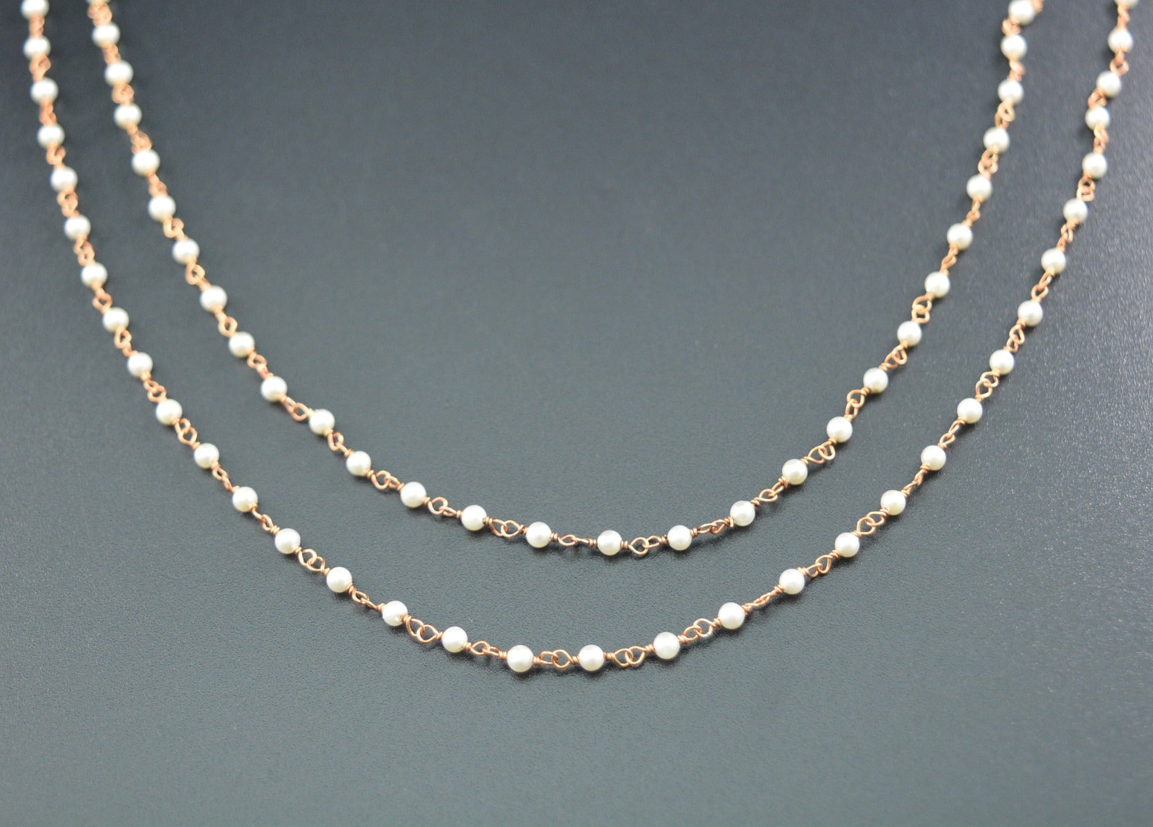 Unique 925 Silver Gold Rosary Chain - Pearl 2mm