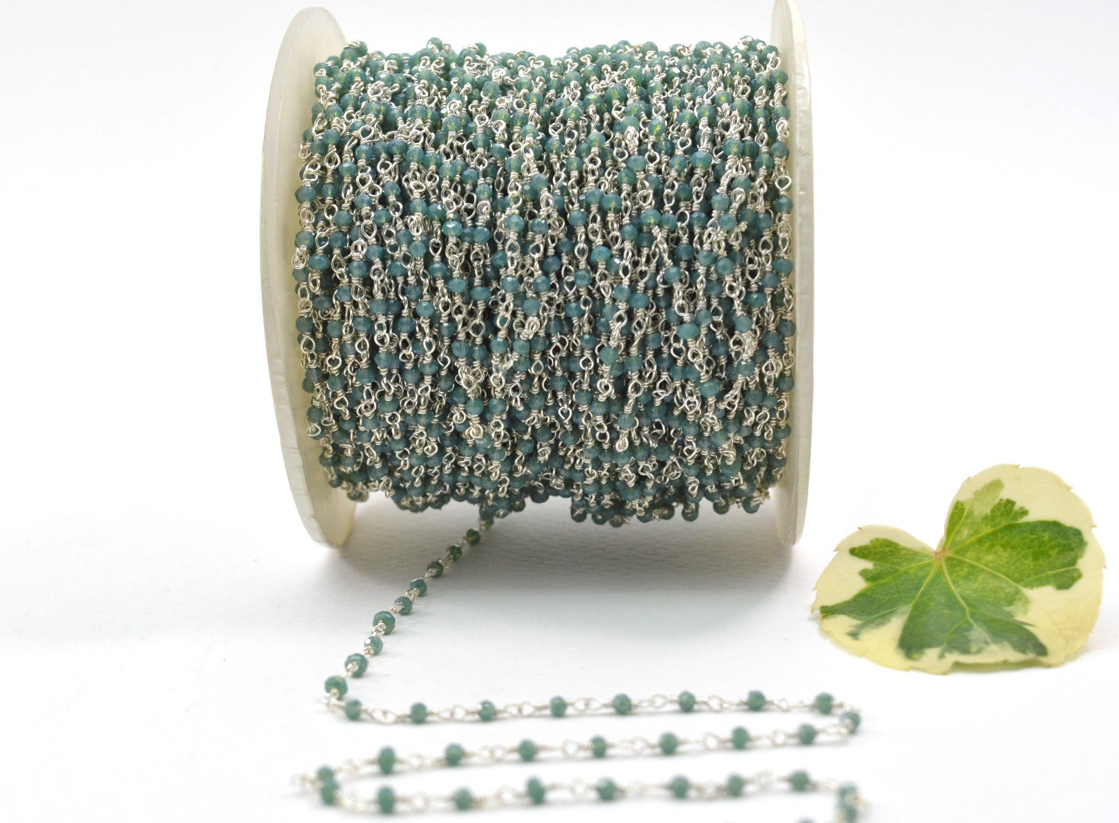Thank you for visiting this site! Gorgeous handmade Apatite Chalcedony Stone 925 Sterling Silver Round Ball Rosary Chain findings will bring a premium touch to your handmade designs.