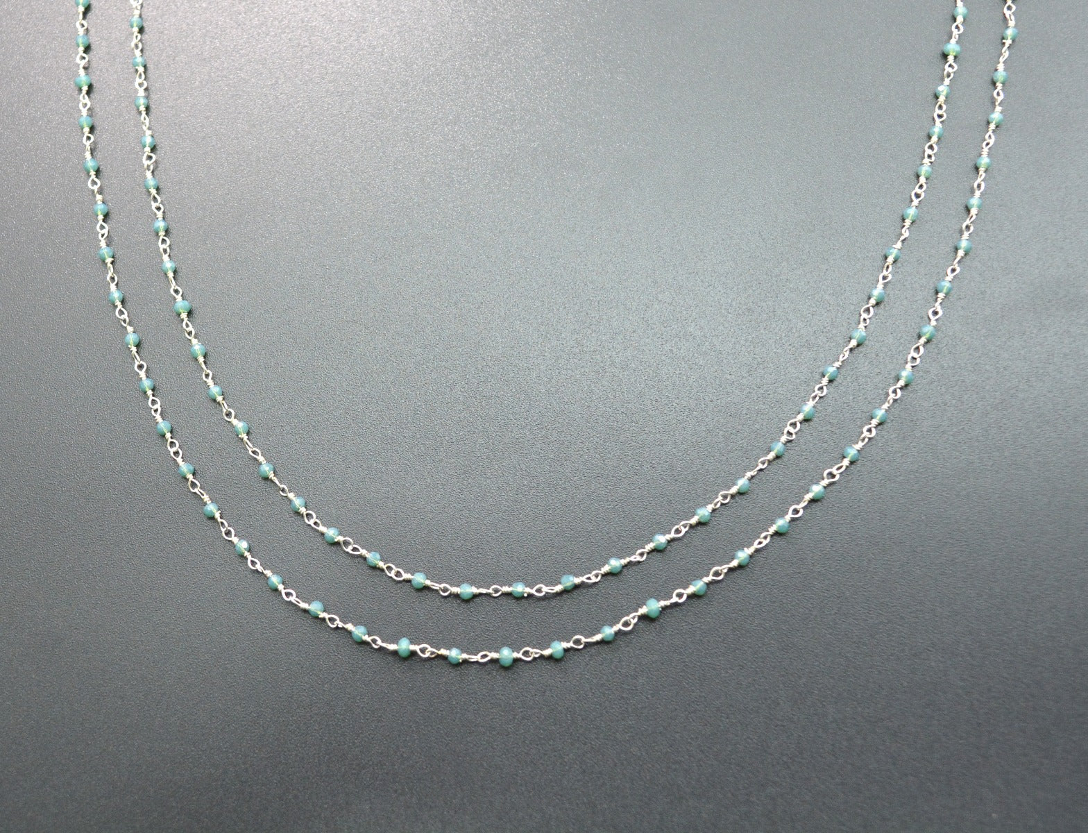 Unique Rosary Chain - Chalcedony 925 Silver 2mm