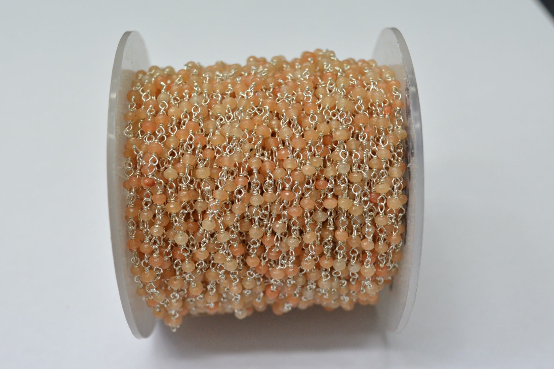 925 Sterling Silver Gold Plated Roundel Shape 2.00mm Wire Wrapped Rosary Chain With Orange Jade Stone. Sold By foot, ROS2-5691