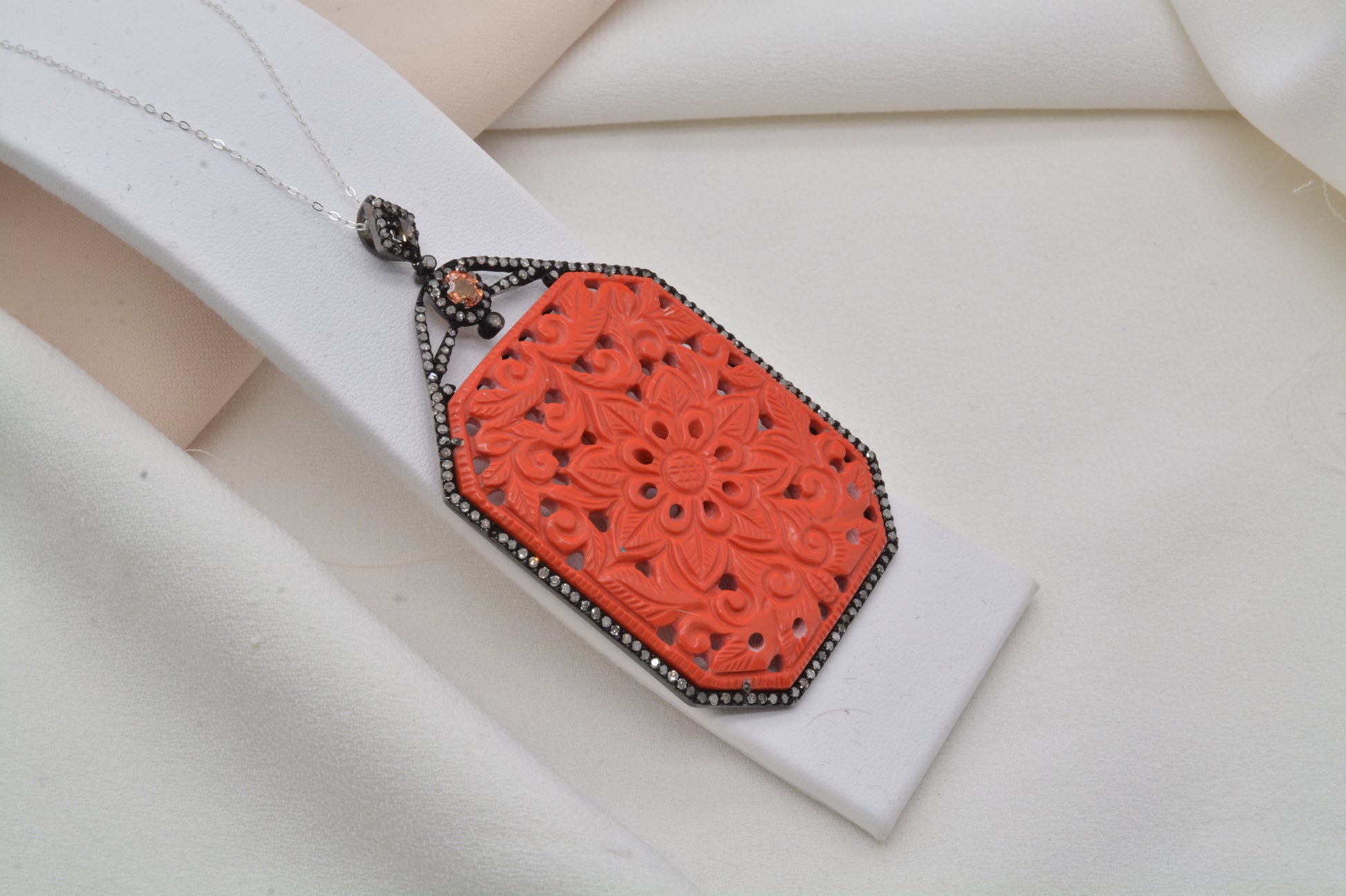 A refined fusion of fine silver craftsmanship and the vibrant beauty of coral, this pendant is a timeless addition to your jewelry collection or a thoughtful gift for someone special.
