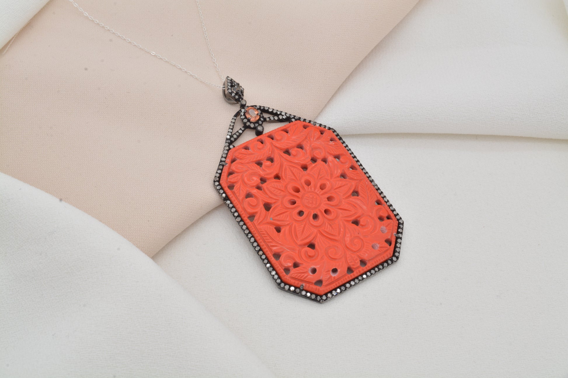 Vibrant Coral Filigree 925 Sterling Silver Pendant