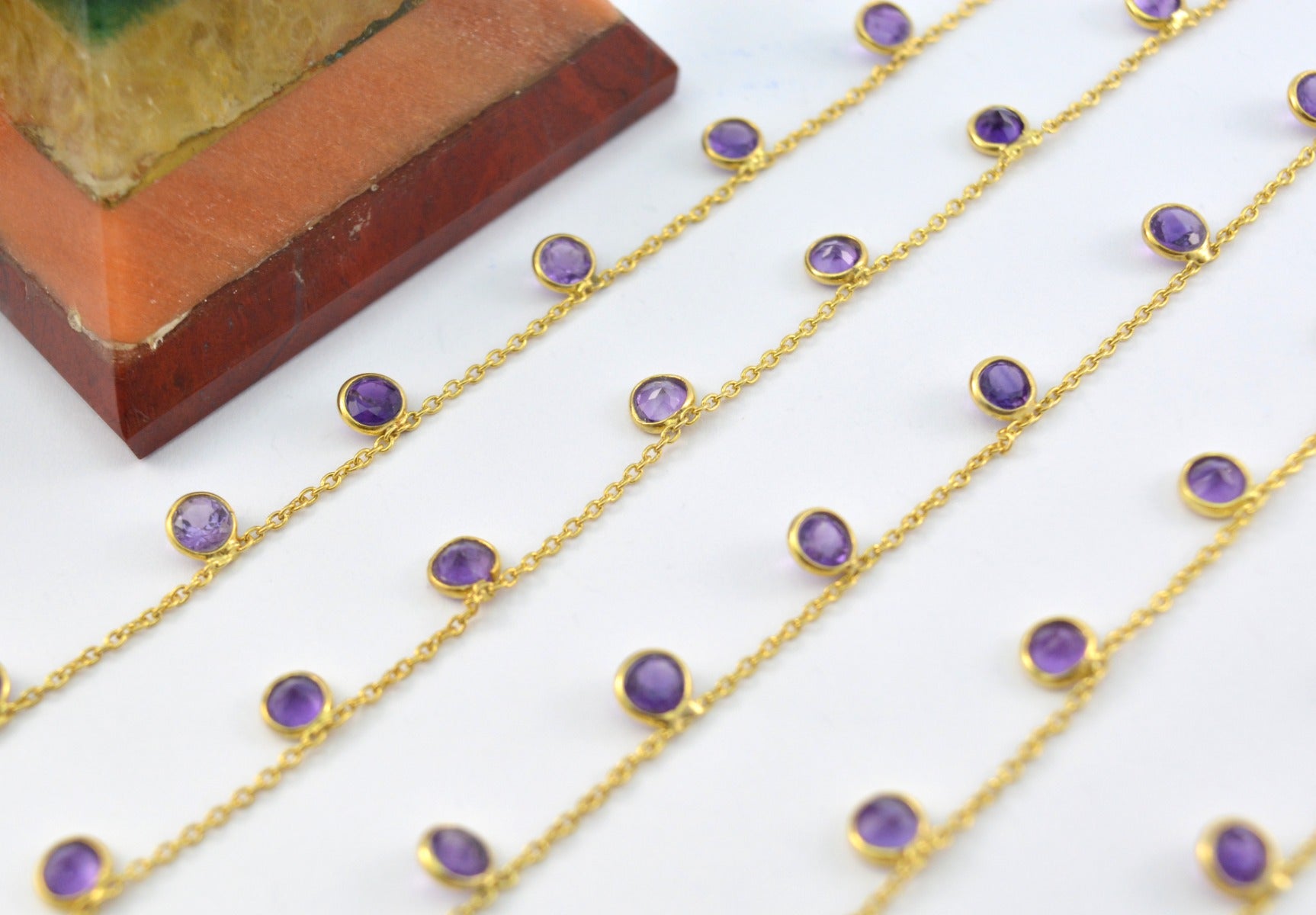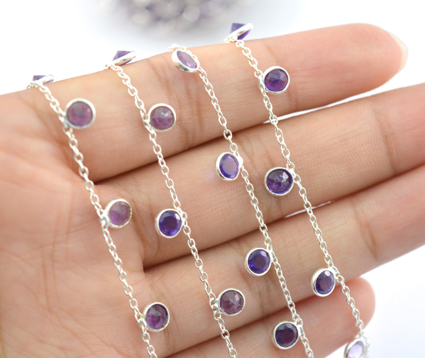 Vintage 925 Silver Gold Rosary Chain - Amethyst 4mm