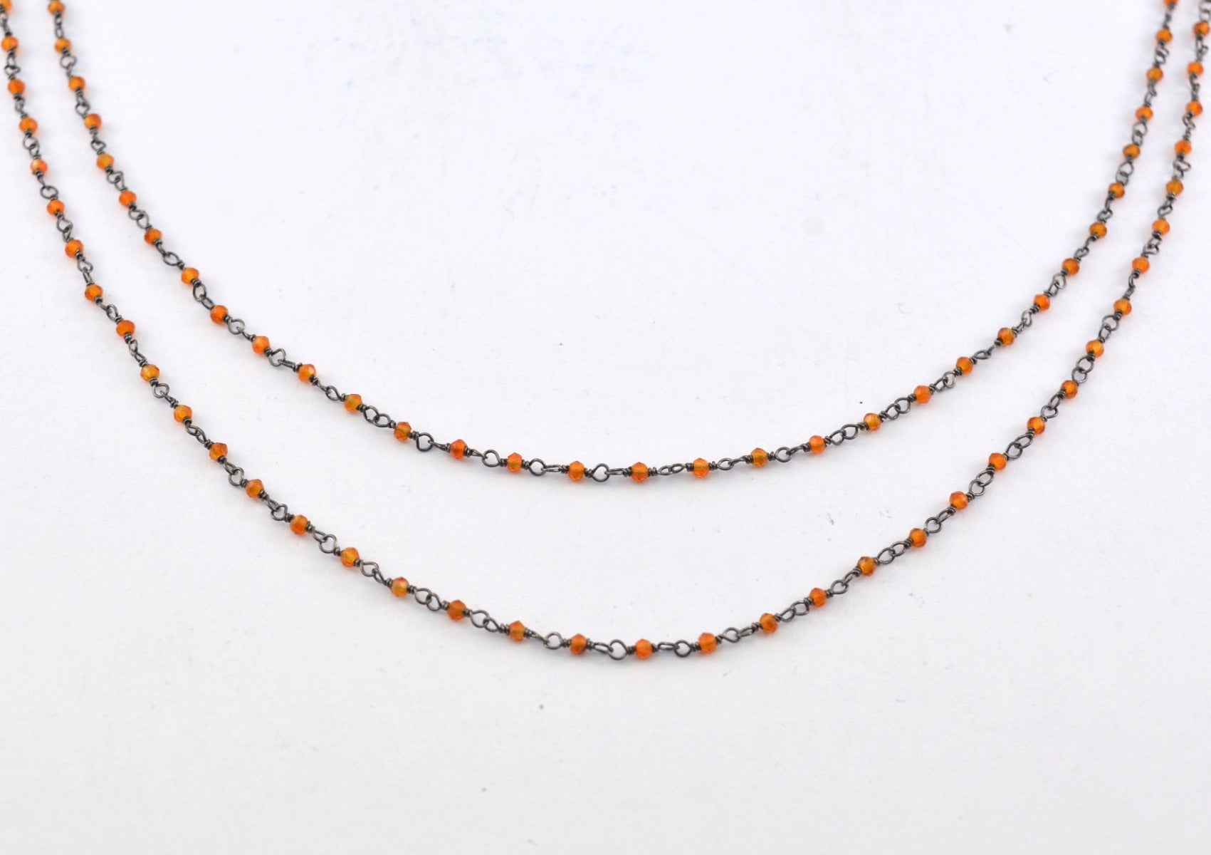 Vintage 925 Silver Gold Rosary Chain - Stone 2mm
