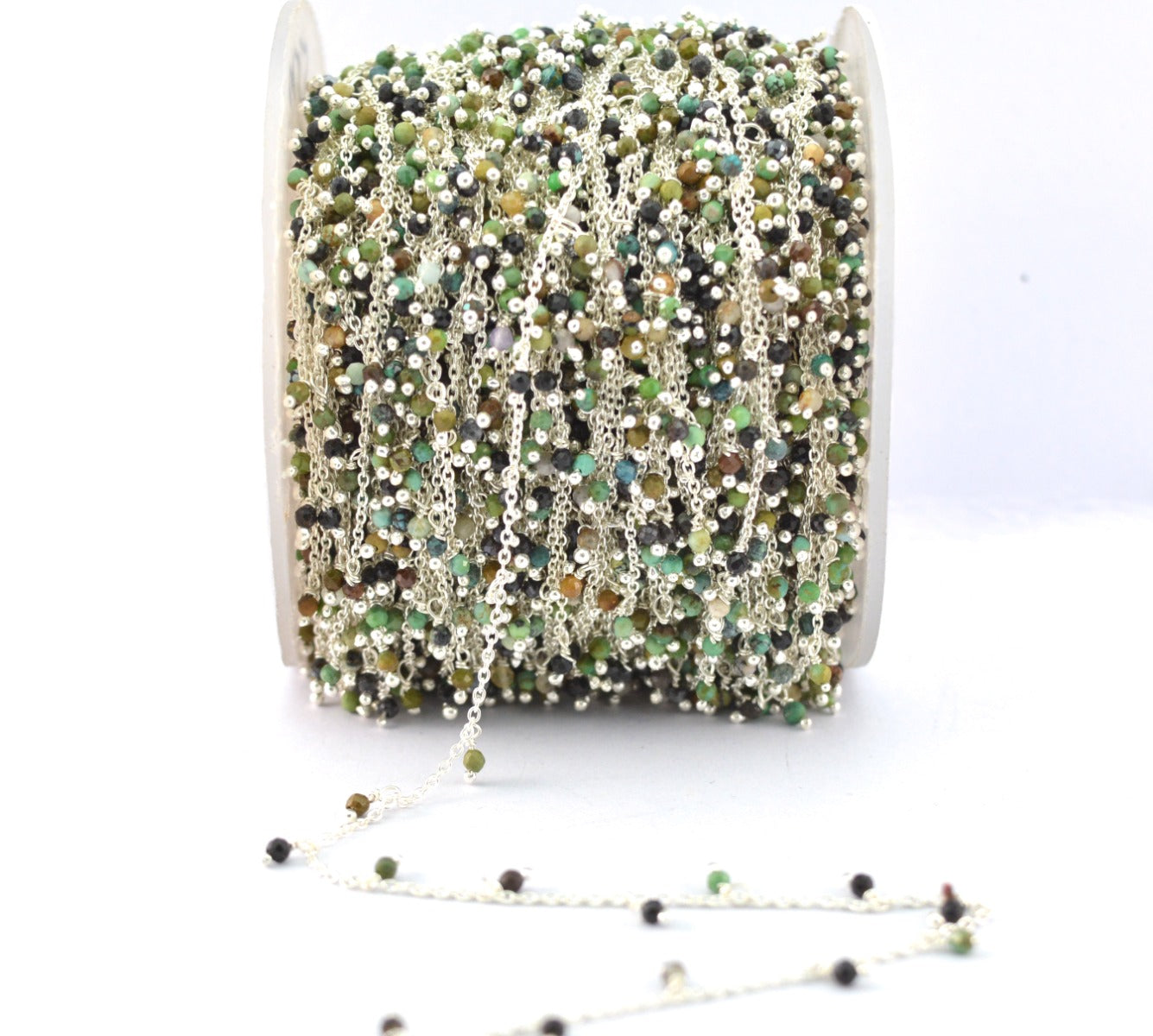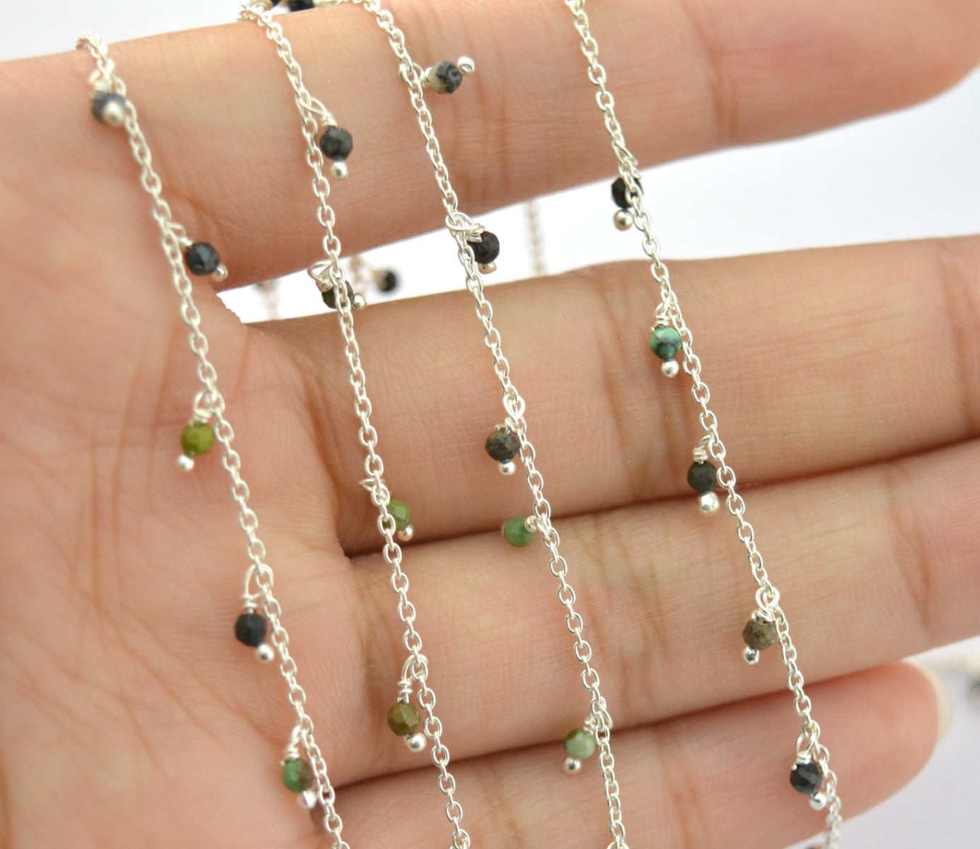 Vintage 925 Silver Gold Rosary Chain - Turquoise 2mm