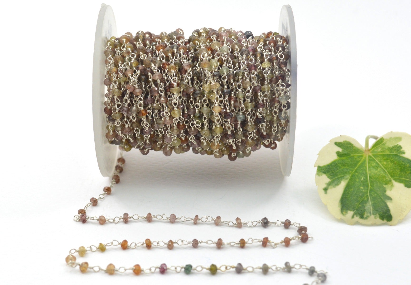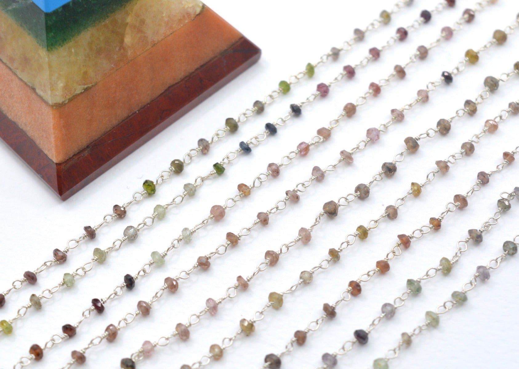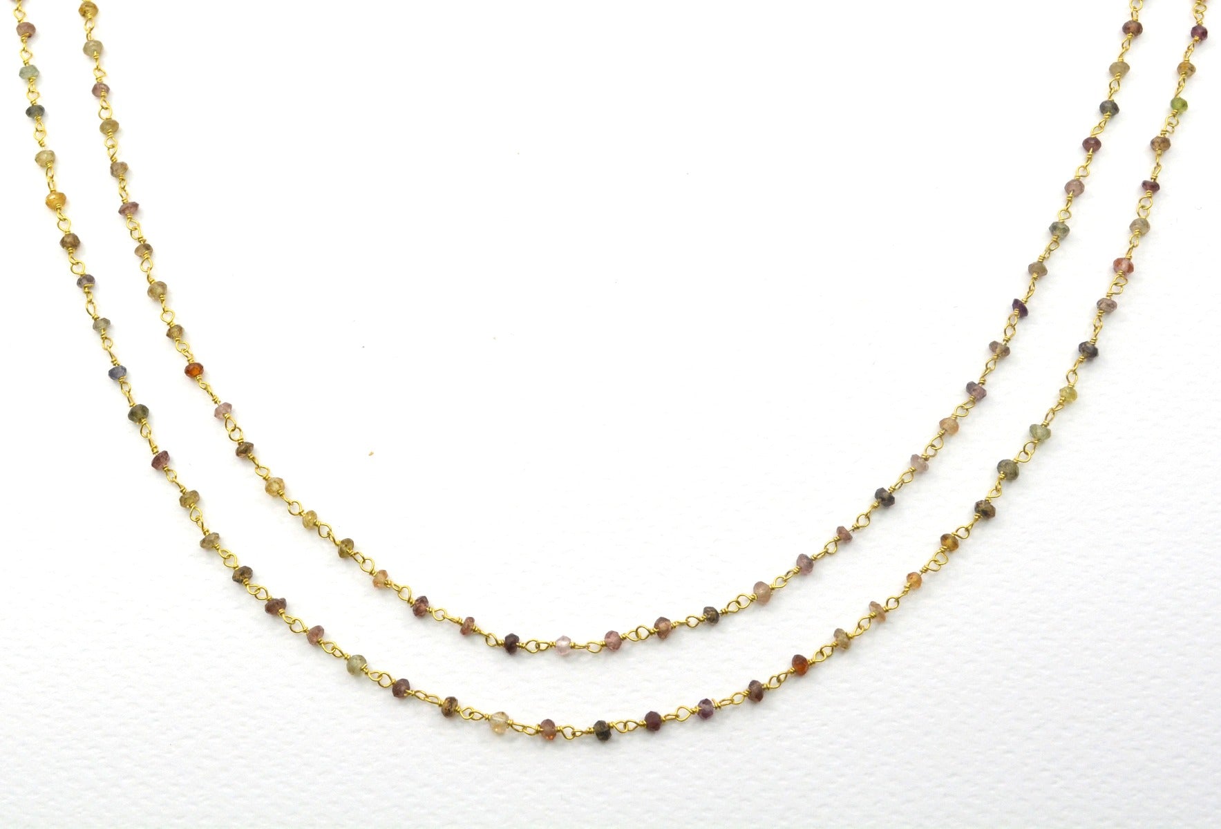 Vintage Rosary Chain - Sapphire 925 Silver Gold 2mm